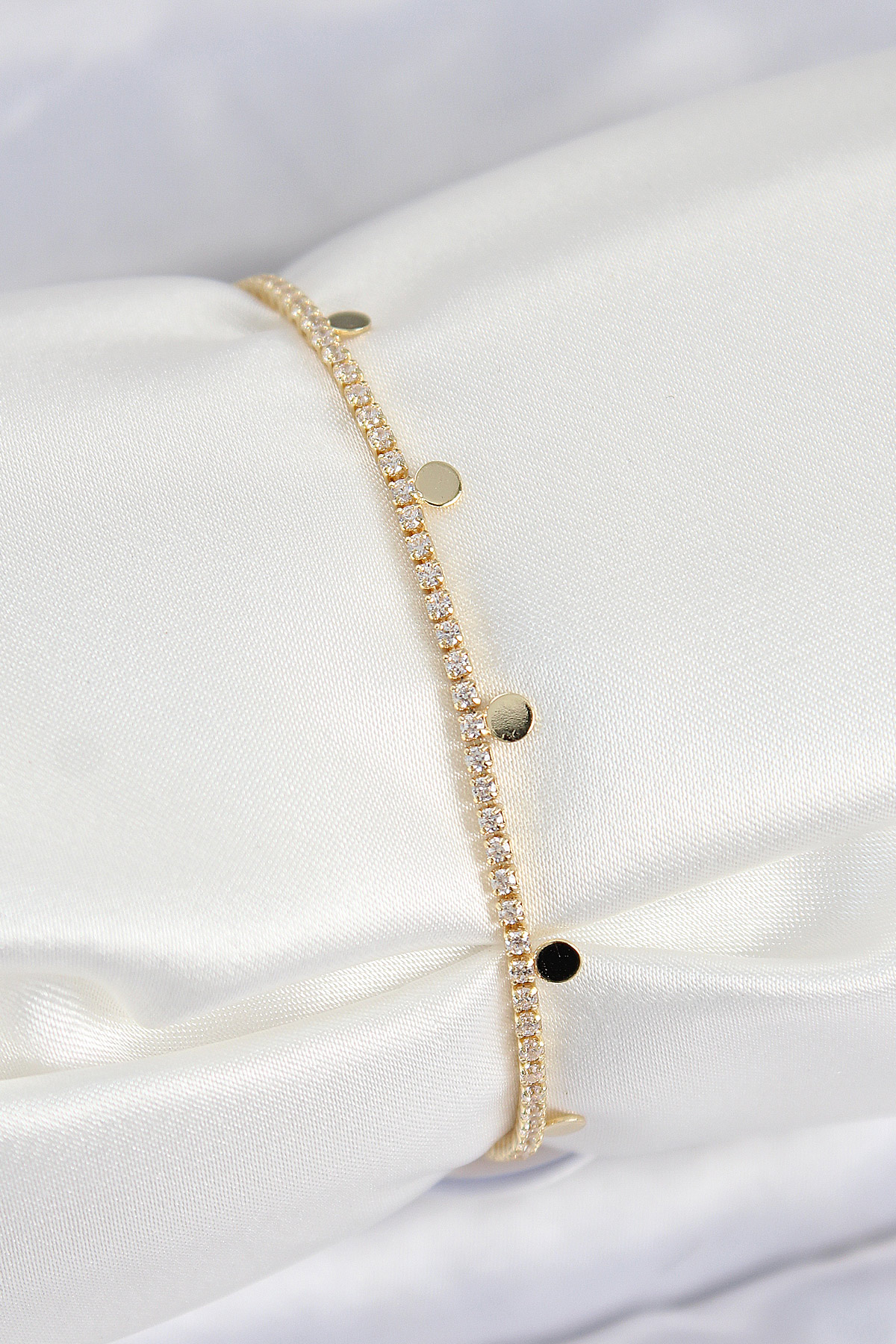 Pirinç Zirkon Taşlı Ezme Zincirli Sıralı Model Gold Renk Kadın Bilekilk - TJ-BB7655