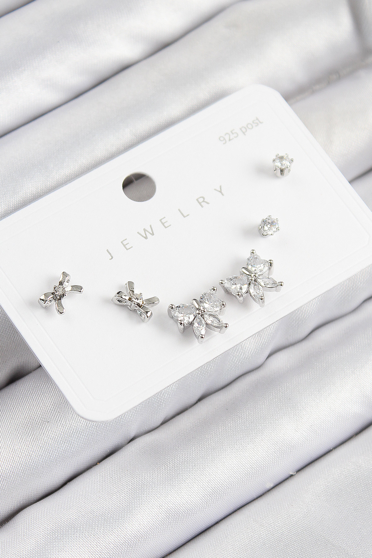 Pirinç Zirkon Taşlı Fiyonk Model Gümüş Renk 925 Ayar Gümüş Çivi Kadın Küpe Set - TJ-BKP11173