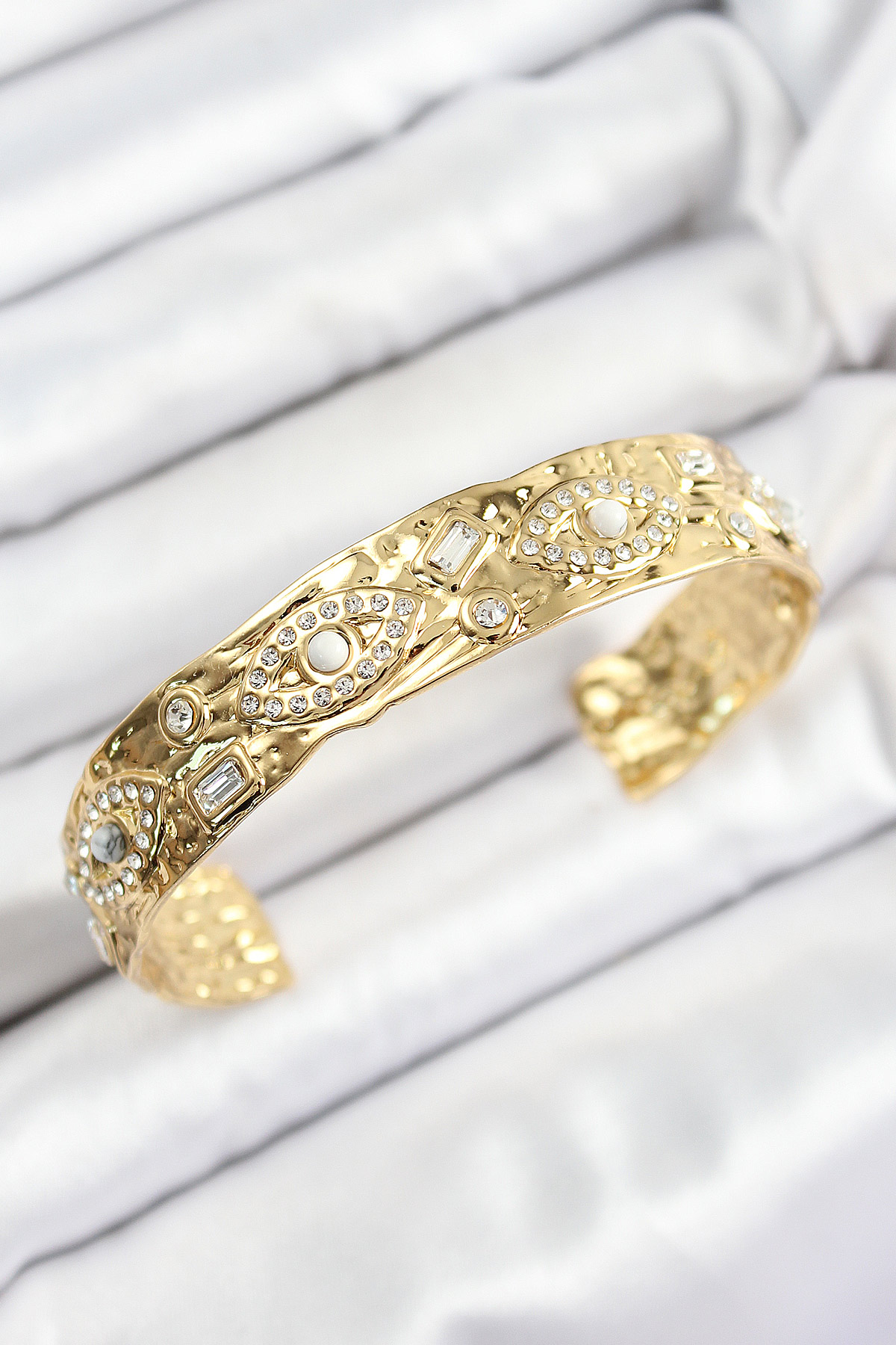 Pirinç Zirkon Taşlı Göz Model Gold Renk Altı Açık Kadın Bileklik - TJ-BB7213