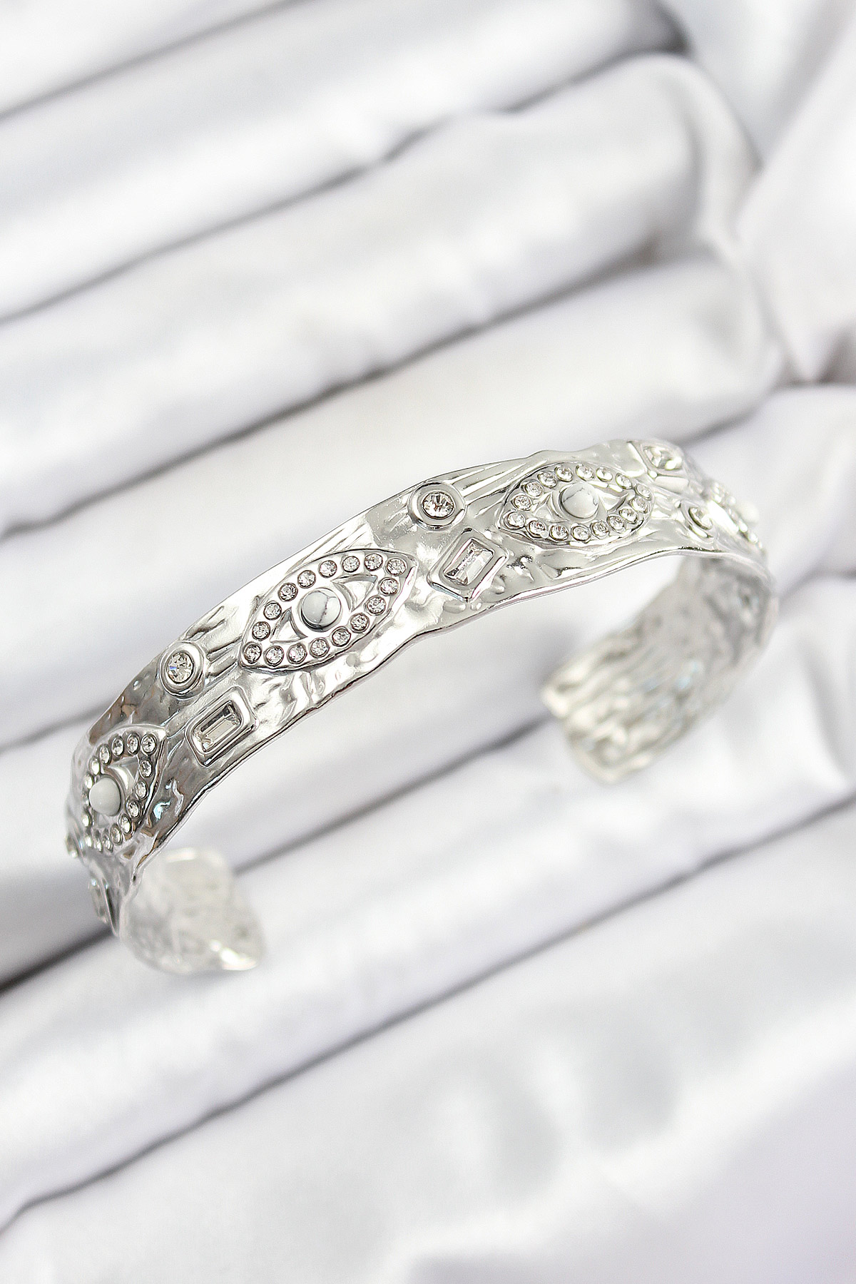 Pirinç Zirkon Taşlı Göz Model Gümüş Renk Altı Açık Kadın Bileklik - TJ-BB7215