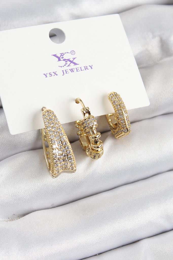 Pirinç Zİrkon Taşlı Halka Model Gold Renk 3'lü Kadın Küpe - BKP10946