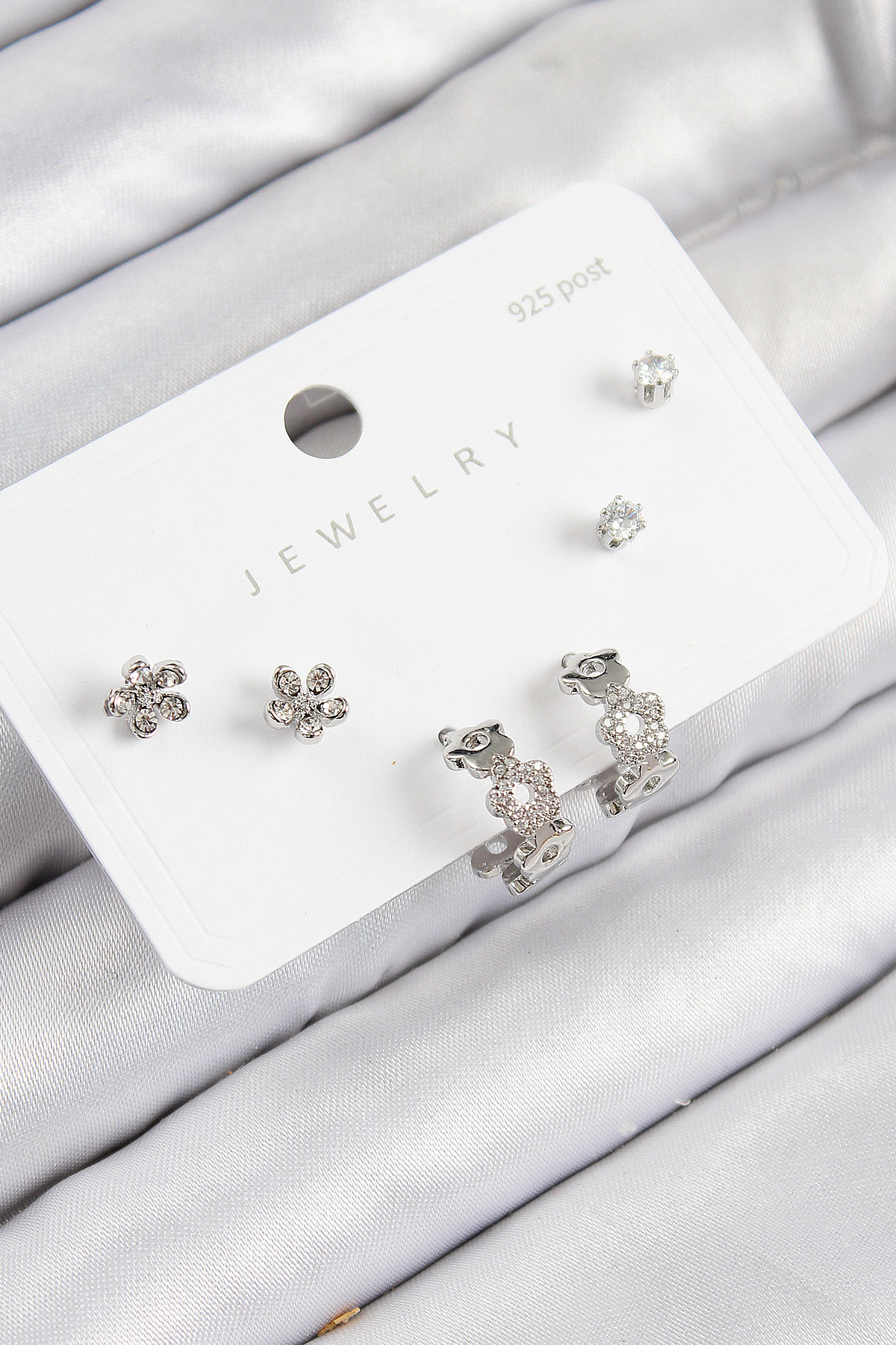 Pirinç Zirkon Taşlı Halka Model Gümüş Renk 925 Ayar Gümüş Çivi Kadın Küpe Set - TJ-BKP11185