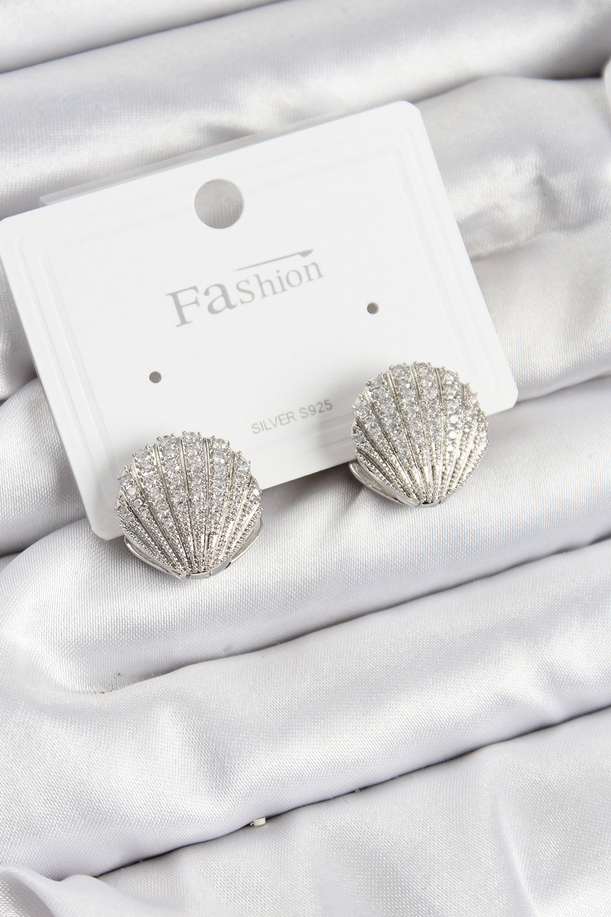 Pirinç Zirkon Taşlı İstiridye Model Gümüş Renk 925 Ayar Gümüş Çivi Kadın Küpe - TJ-BKP10973