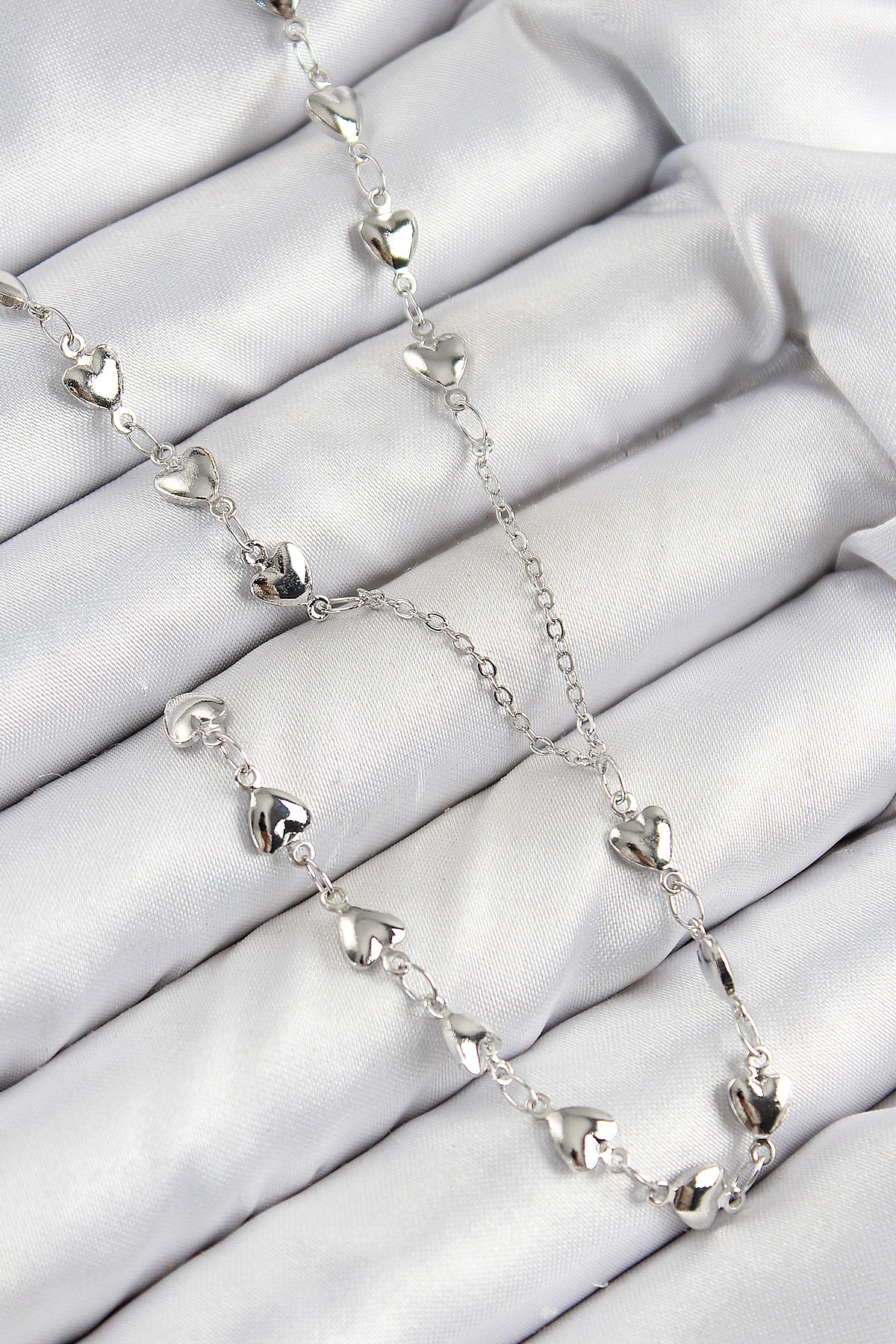 Pirinç Zirkon Taşlı Kalp Model Gümüş Renk Y Kolye - TJ-BKO10456