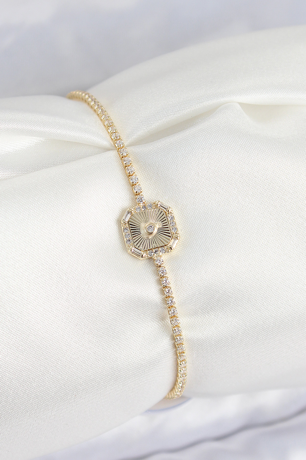 Pirinç Zirkon Taşlı Kare Model Gold Renk Kadın Bilekilk - TJ-BB7661