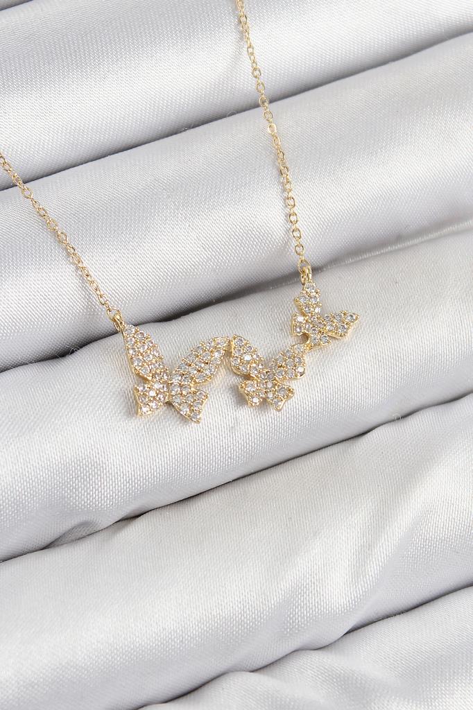 Pirinç Zirkon Taşlı Kelebek Model Gold Renk Kadın Kolye - BKO10424