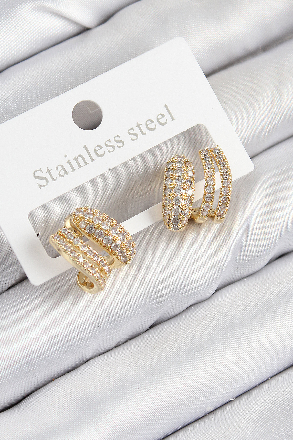 Pirinç Zirkon Taşlı Kıvrımlı Model Gold Renk Kadın Küpe - TJ-BKP11091