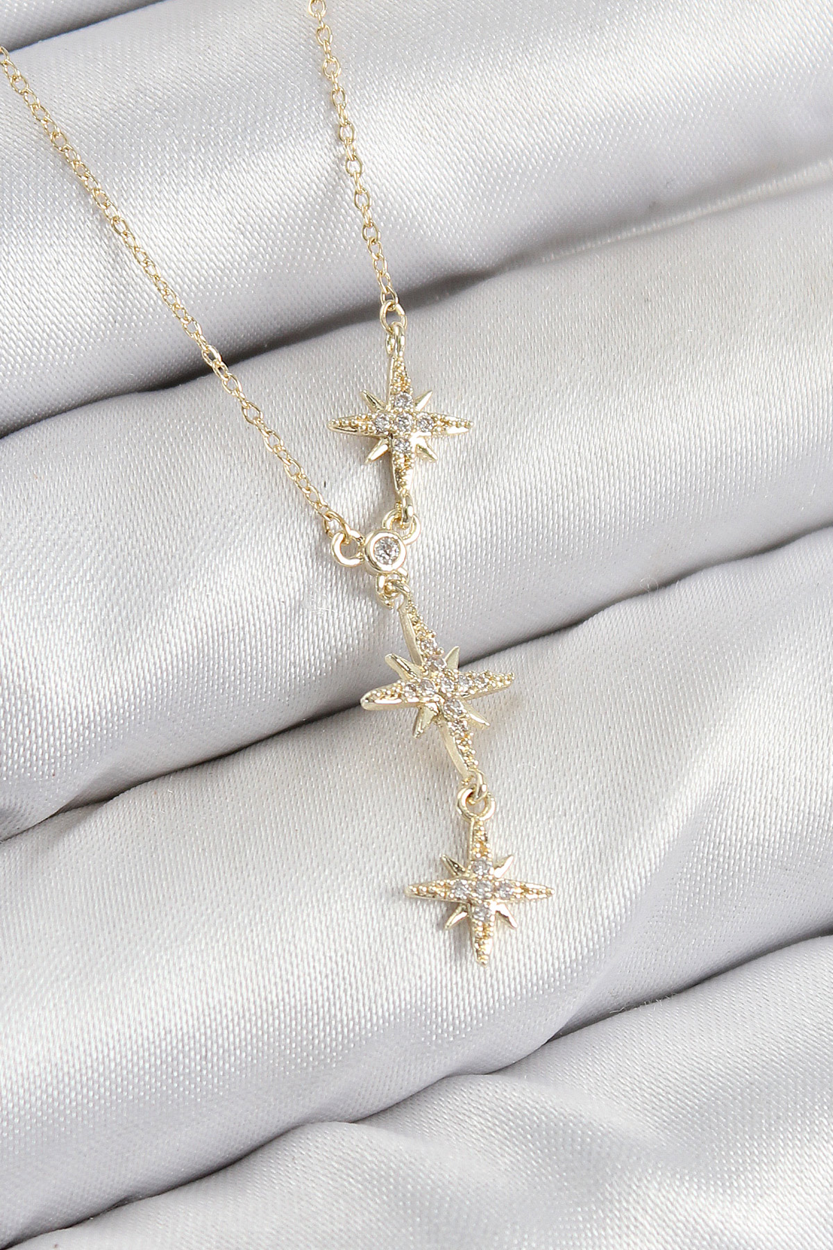 Pirinç Zirkon Taşlı Kutup Yıldızı Model Gold Renk Kadın Kolye - TJ-BKO10426