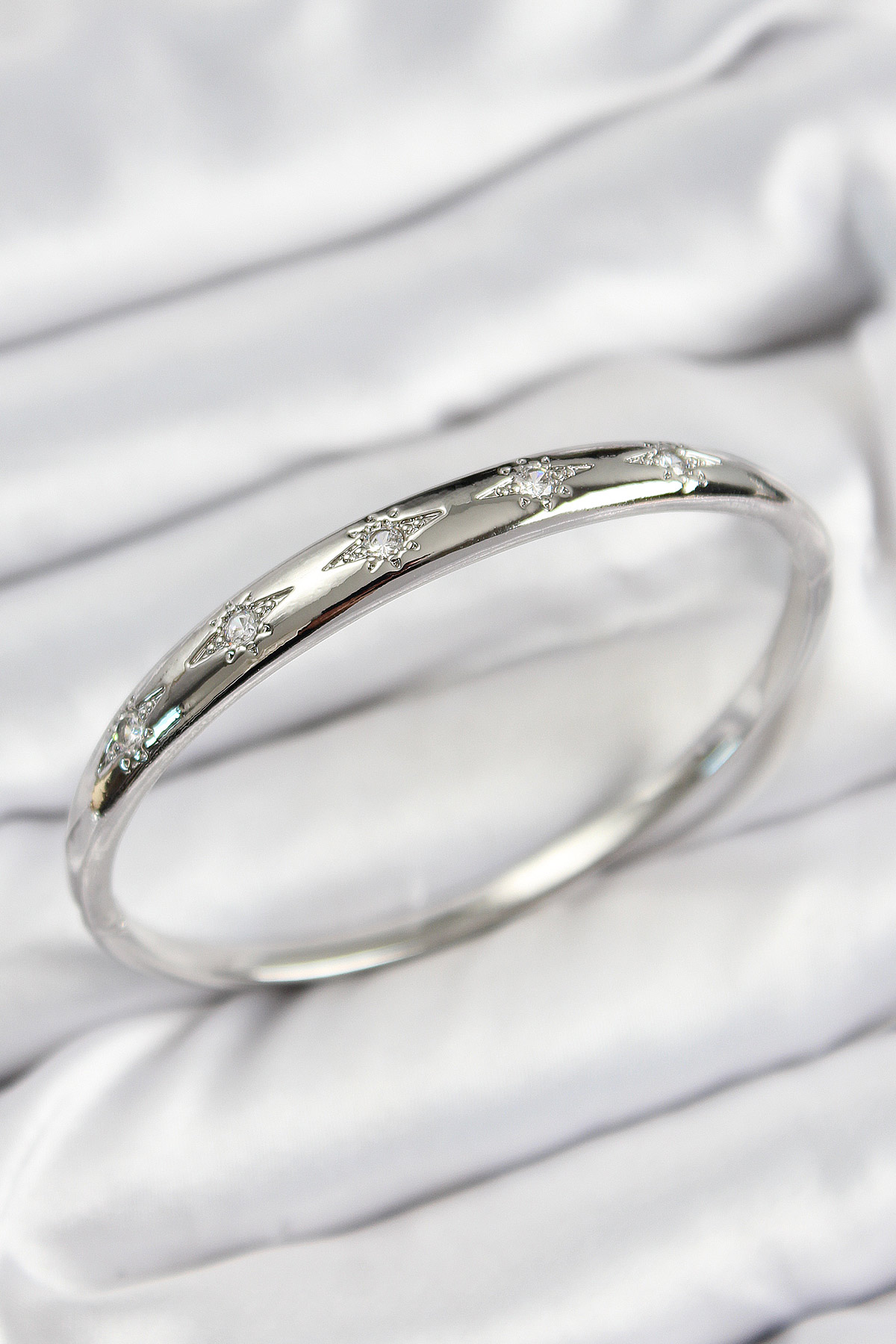 Pirinç Zirkon Taşlı Kutup Yıldızı Model Gümüş Renk Kadın Kelepçe - TJ-BB7571