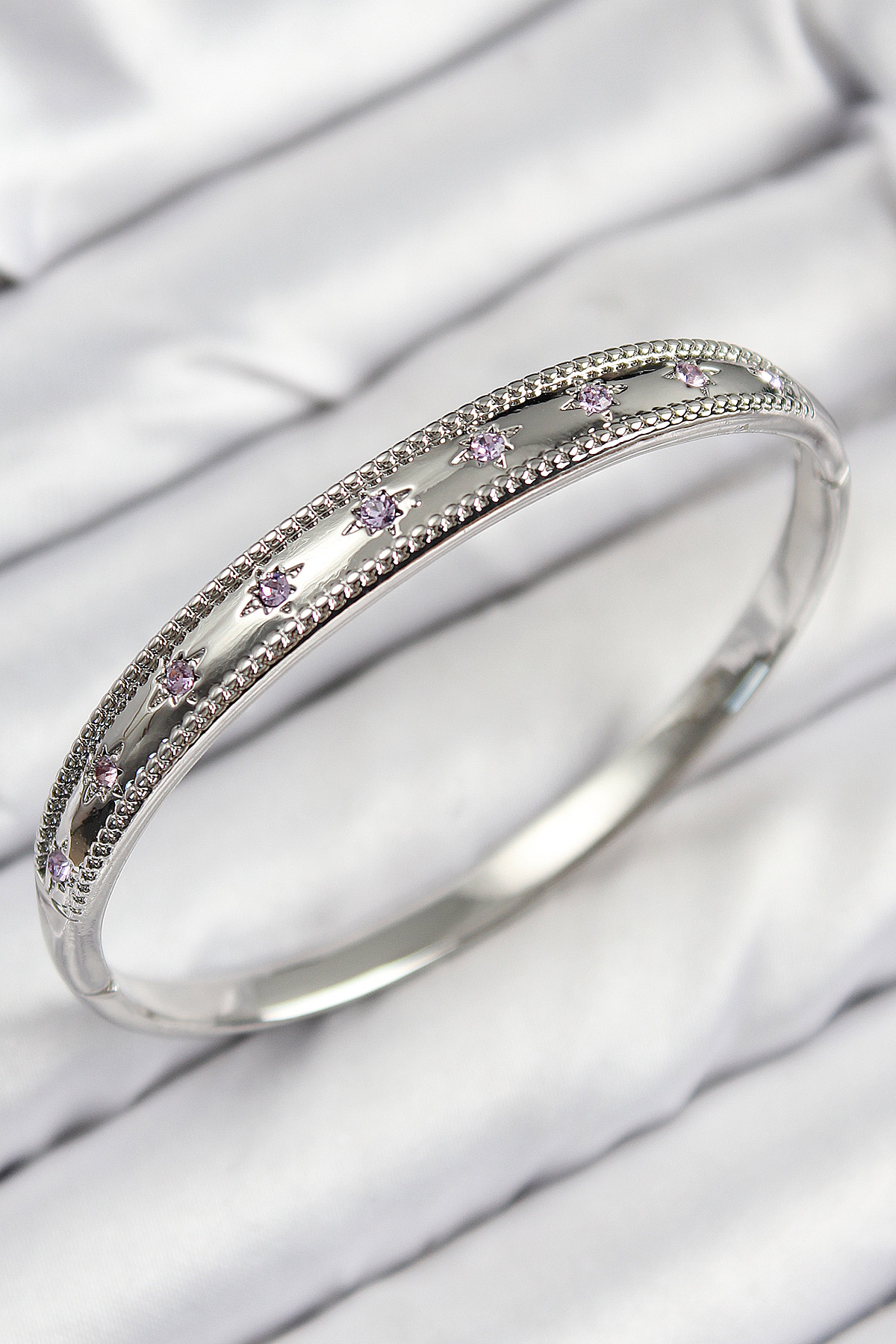 Pirinç Zirkon Taşlı Kutup Yıldızı Model Gümüş Renk Kadın Kelepçe - TJ-BB7678