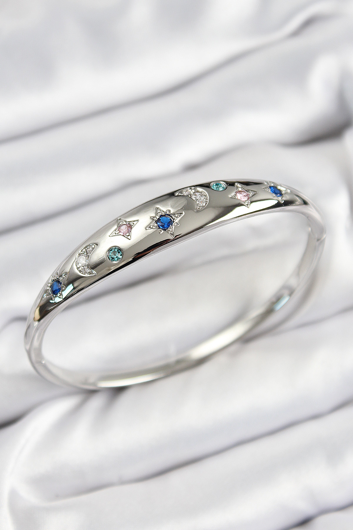 Pirinç Zirkon Taşlı Kutup Yıldızı Ve Hilal Model Gümüş Renk Kadın Kelepçe - TJ-BB7575