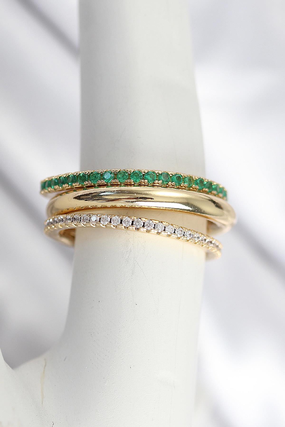 Pirinç Zirkon Taşlı Mix Renk 3'Lü Kadın Yüzük - TJ-BYK3826