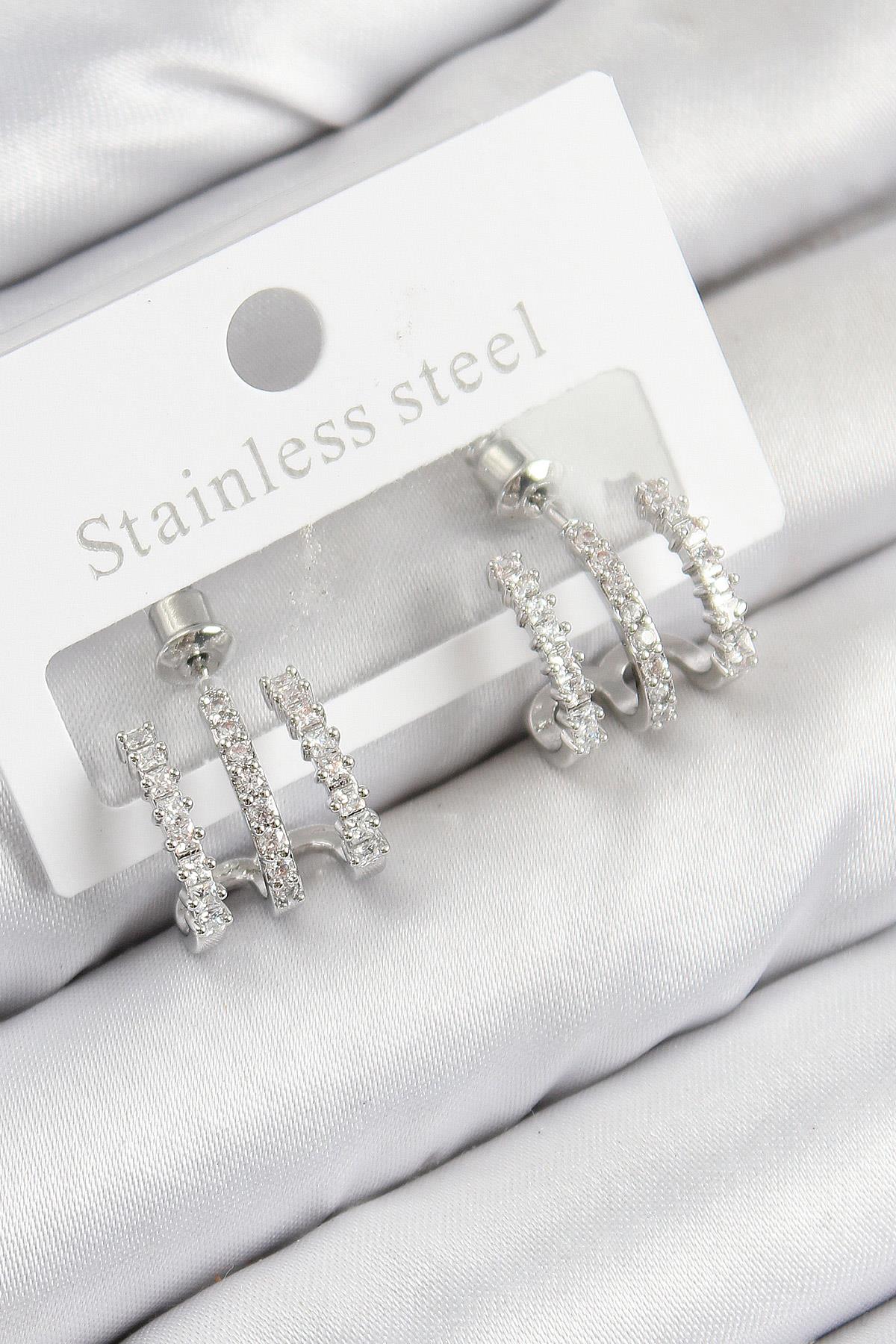Pirinç Zirkon Taşlı Model Gümüş Renk Kadın Küpe - BKP11102
