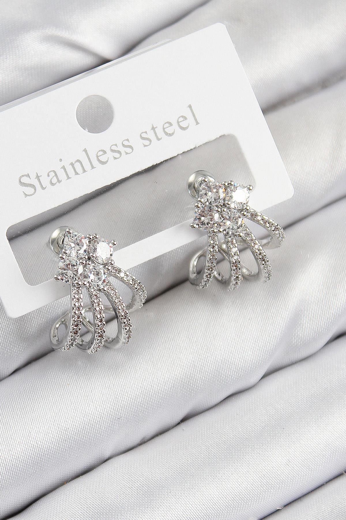 Pirinç Zirkon Taşlı Model Gümüş Renk Kadın Küpe - BKP11107