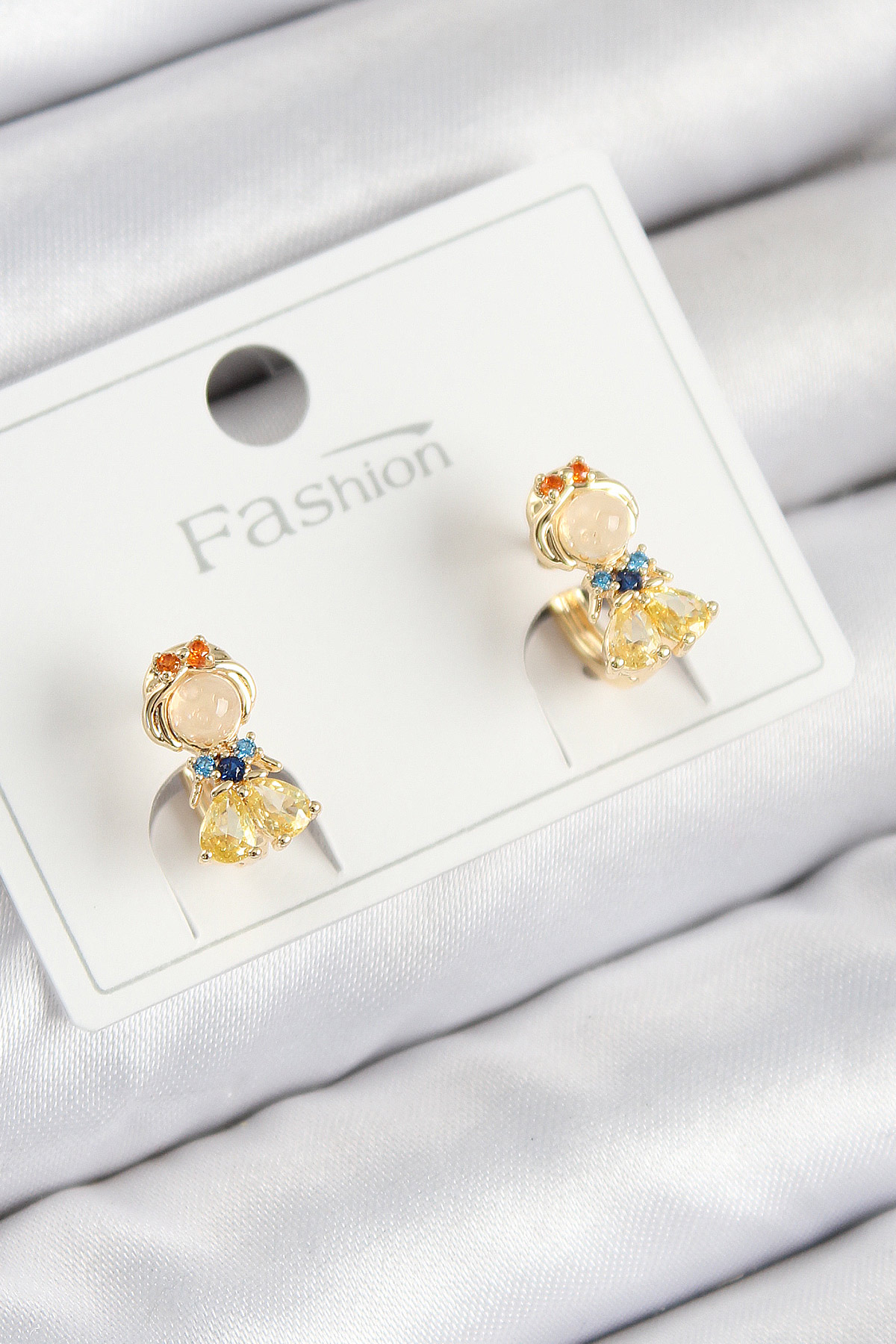 Pirinç Zirkon Taşlı Pamuk Prenses Model Gold Renk Çocuk Küpe - TJ-BKP11196