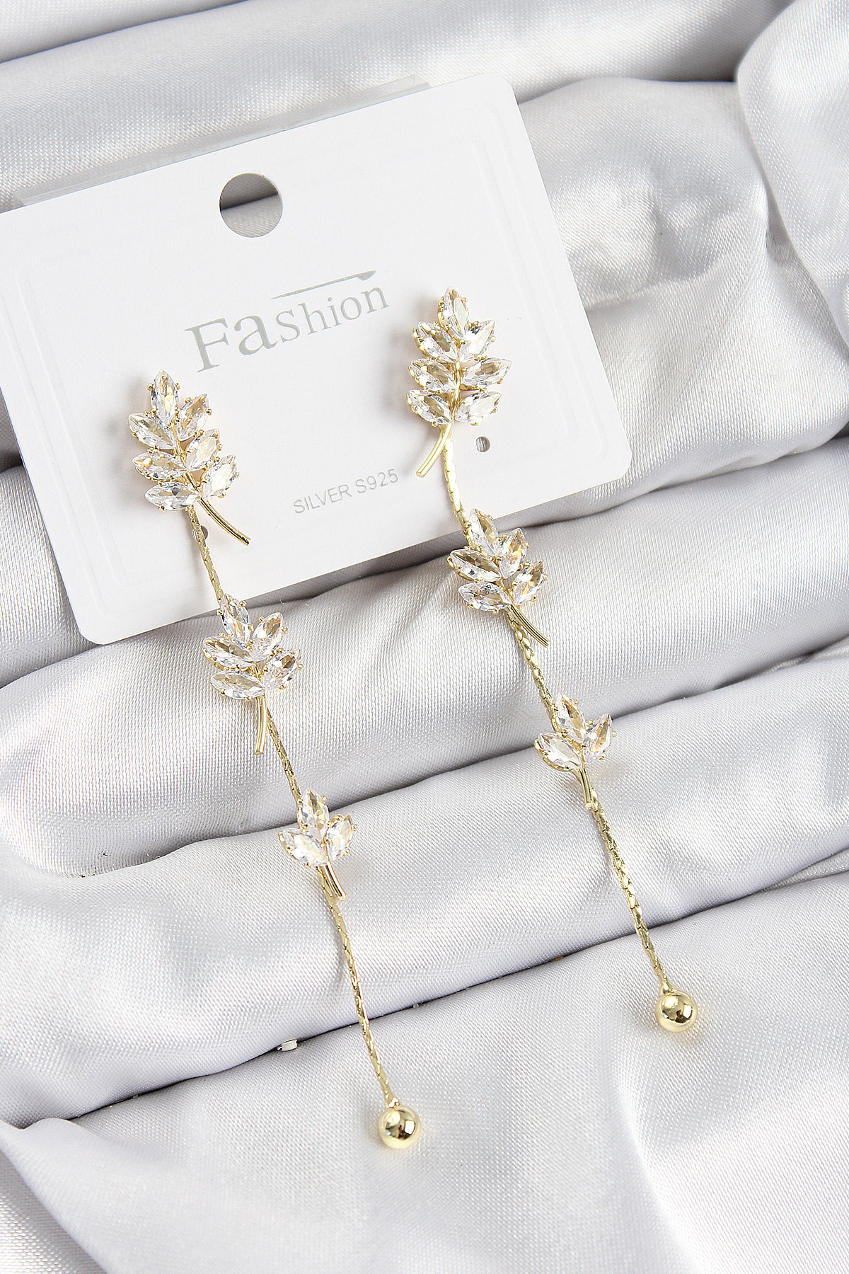 Pirinç Zirkon Taşlı Sallantılı Model Gold Renk 925 Ayar Gümüş Çivi Kadın Küpe - TJ-BKP10976