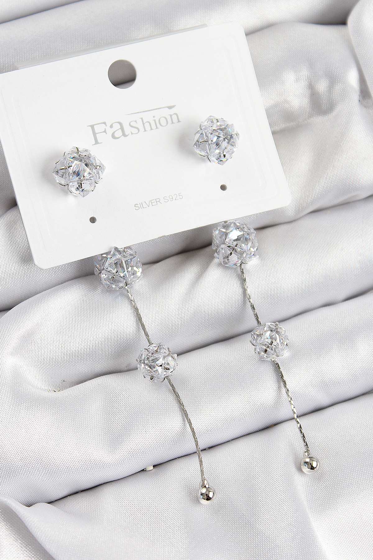 Pirinç Zirkon Taşlı Sallantılı Model Gümüş Renk 925 Ayar Gümüş Çivi Kadın Küpe - TJ-BKP10979