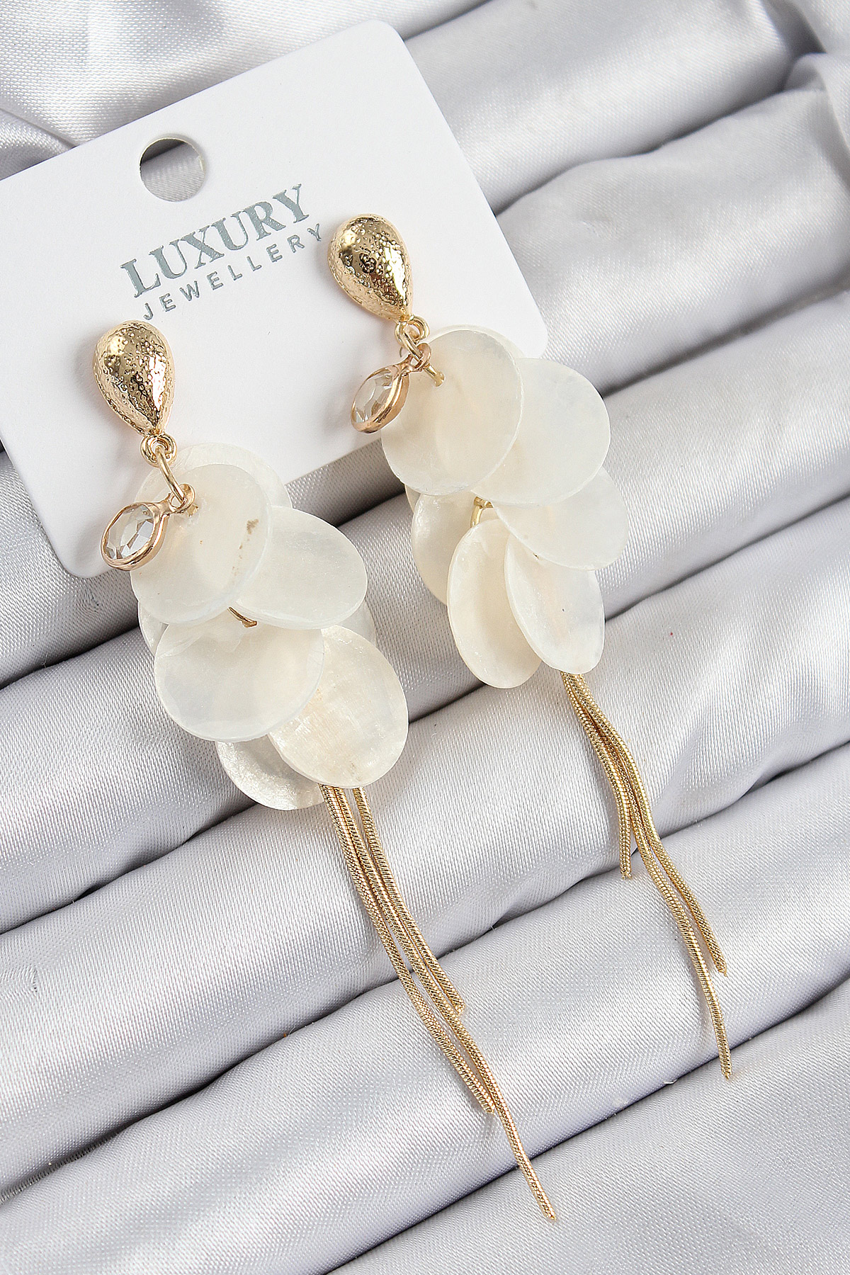 Pirinç Zirkon Taşlı Sallantılı Sedef Model Gold Renk Kadın Küpe - TJ-BKP11084