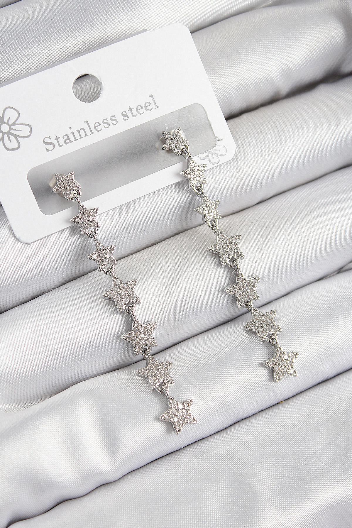 Pirinç Zirkon Taşlı Sallantılı Yıldız Model Gümüş Renk Kadın Küpe - TJ-BKP10911