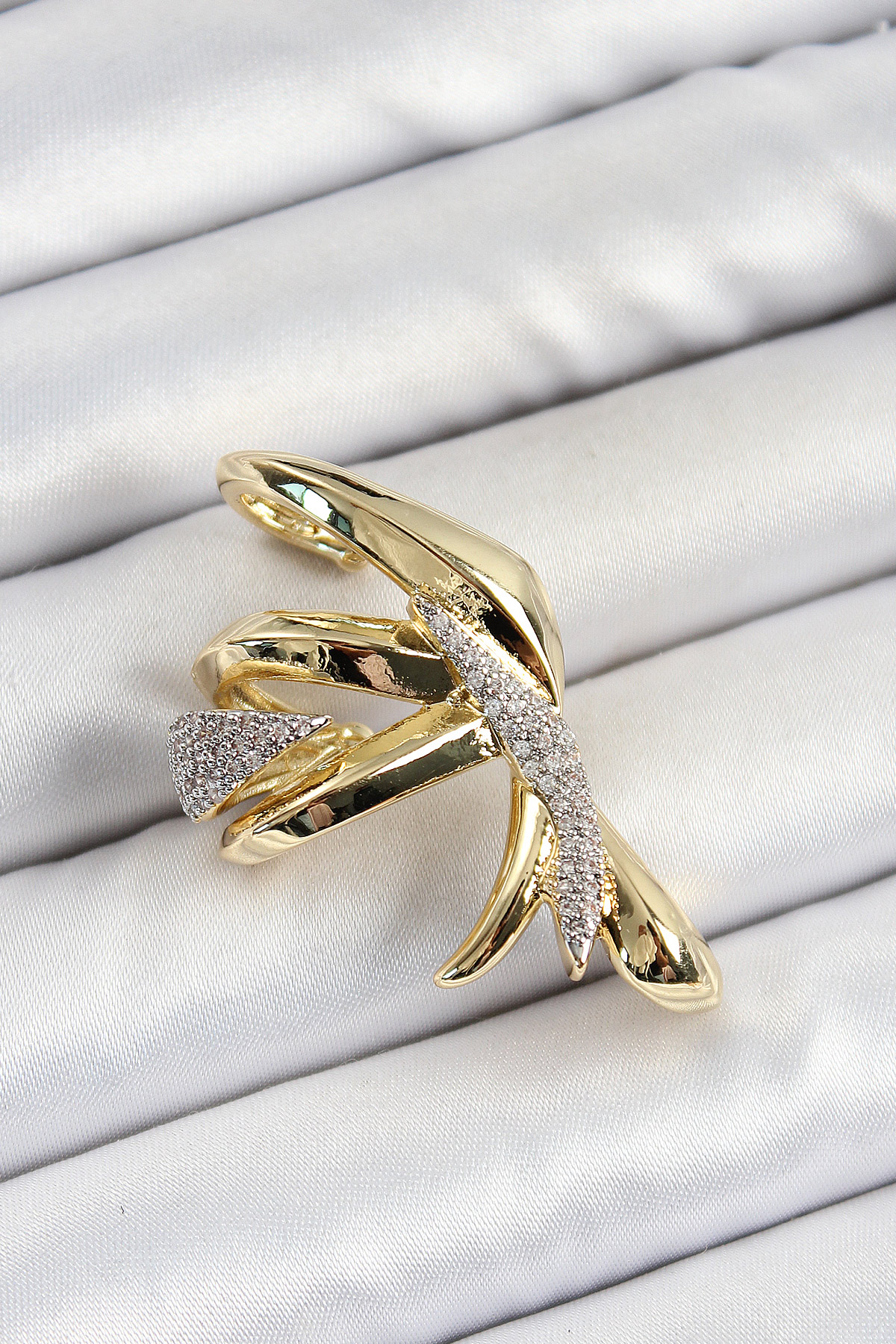 Pirinç Zirkon Taşlı Sıkıştırma Sağ Kıkırdak Gold Renk Kadın Küpe - TJ-BKP10756