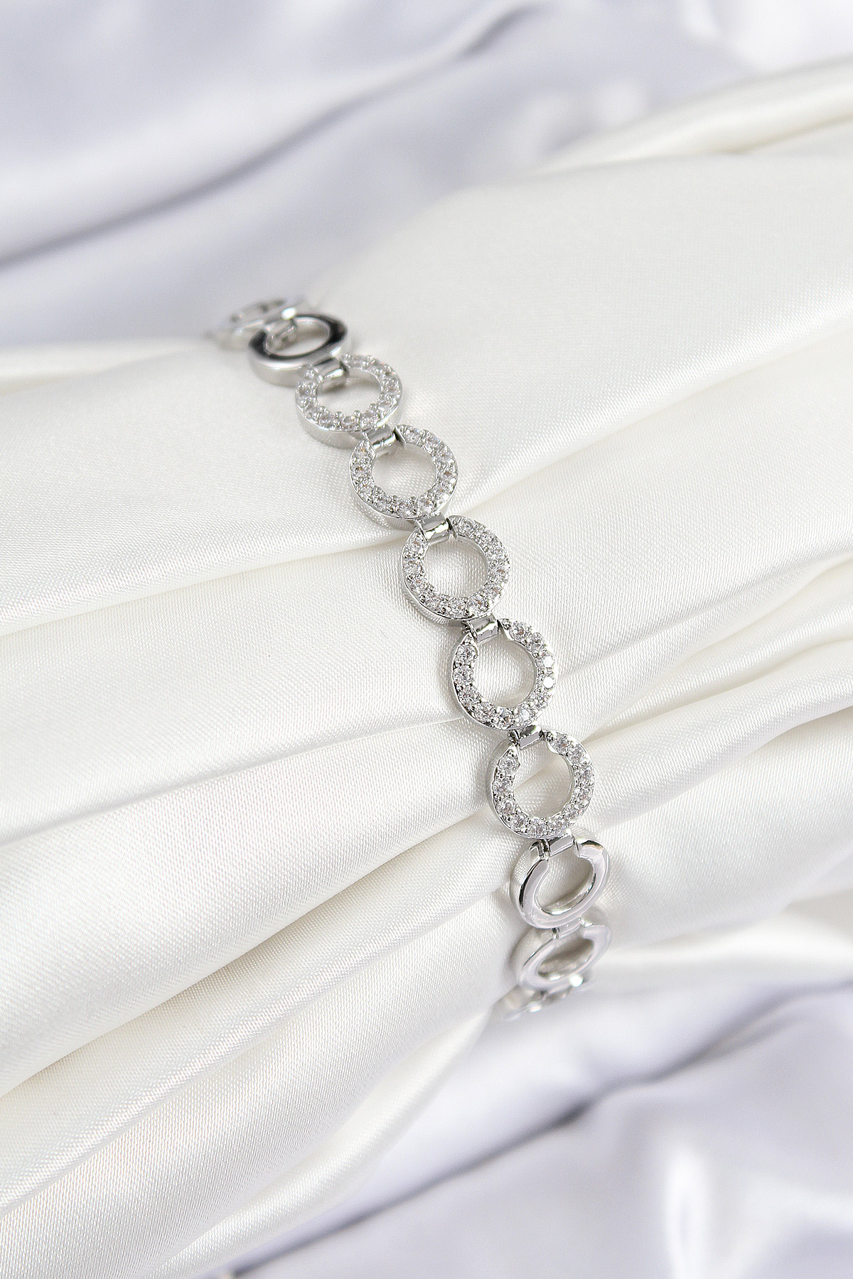 Pirinç Zirkon Taşlı Sıralı Halka Model Gümüş Renk Kadın Bileklik - TJ-BB7556