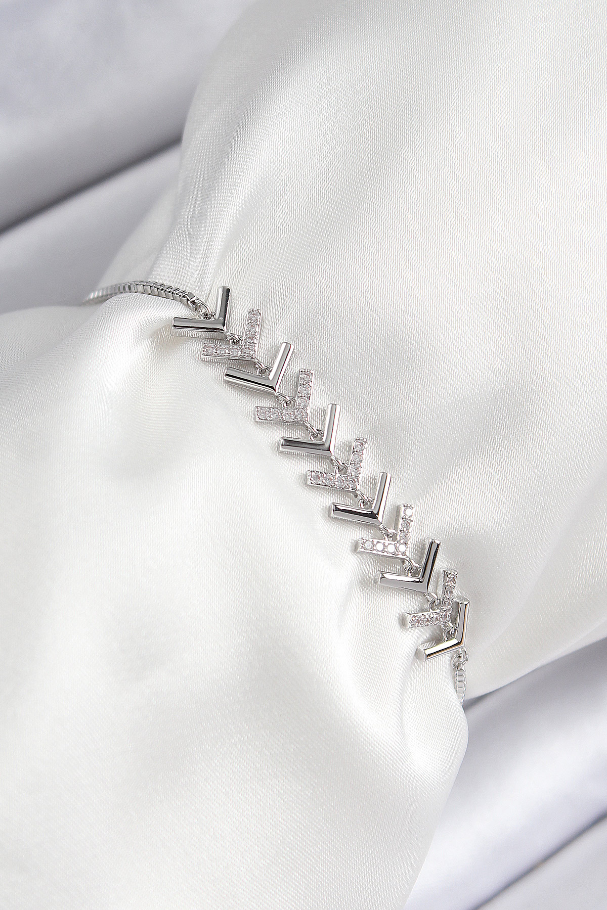 Pirinç Zirkon Taşlı Sıralı Ok Model Gümüş Renk Asansörlü Kadın Bileklik - TJ-BB7456