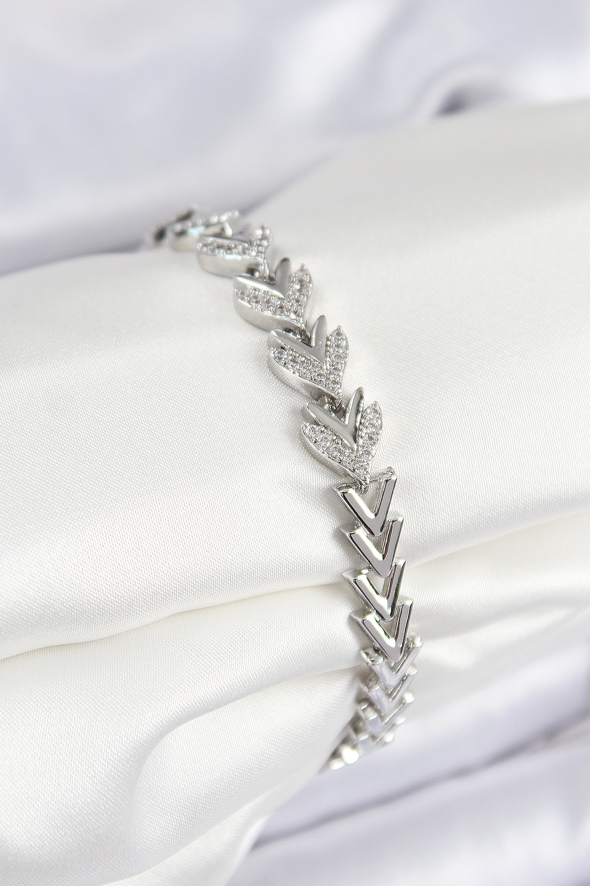 Pirinç Zirkon Taşlı Sıralı Ok Model Gümüş Renk Kadın Bileklik - TJ-BB7526
