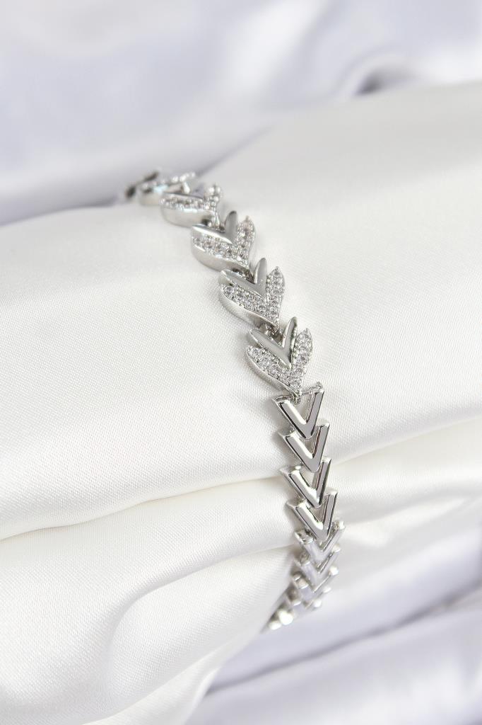 Pirinç Zirkon Taşlı Sıralı Ok Model Gümüş Renk Kadın Bileklik - BB7526