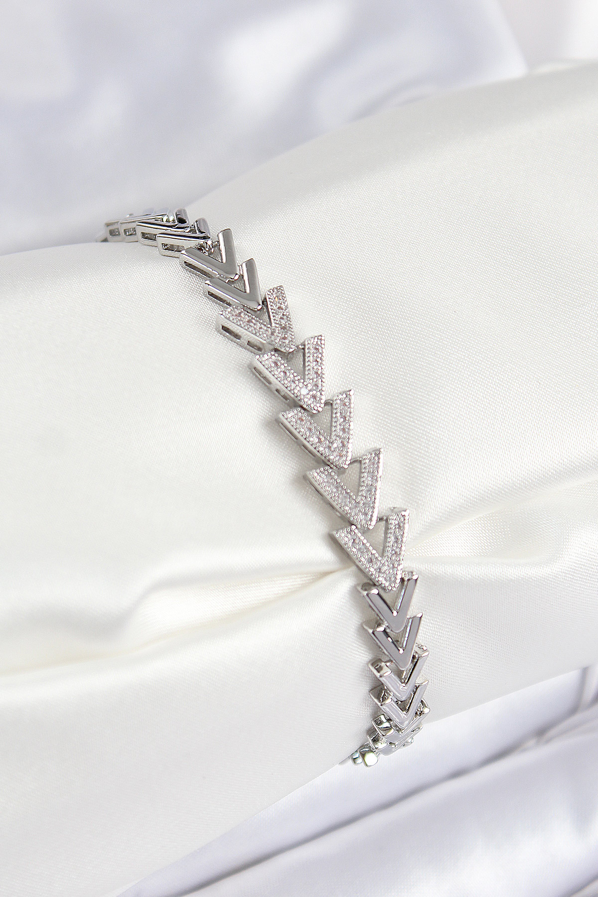 Pirinç Zirkon Taşlı Sıralı Ok Model Gümüş Renk Kadın Bileklik - TJ-BB7560