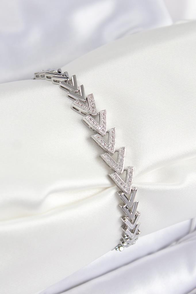 Pirinç Zirkon Taşlı Sıralı Ok Model Gümüş Renk Kadın Bileklik - BB7560