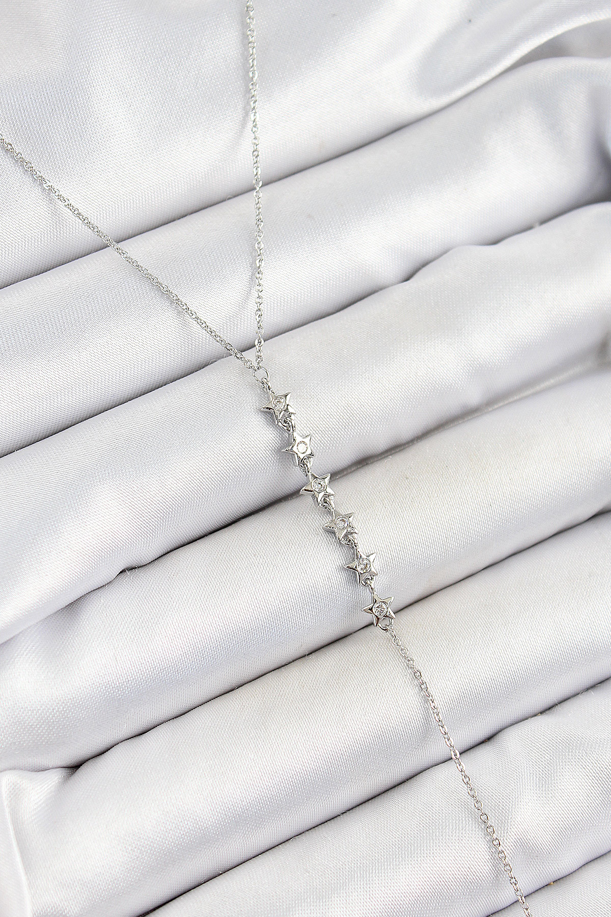 Pirinç Zirkon Taşlı Sıralı Yıldız Figürlü Y Model Gümüş Renk Kadın Kolye - TJ-BKO10321