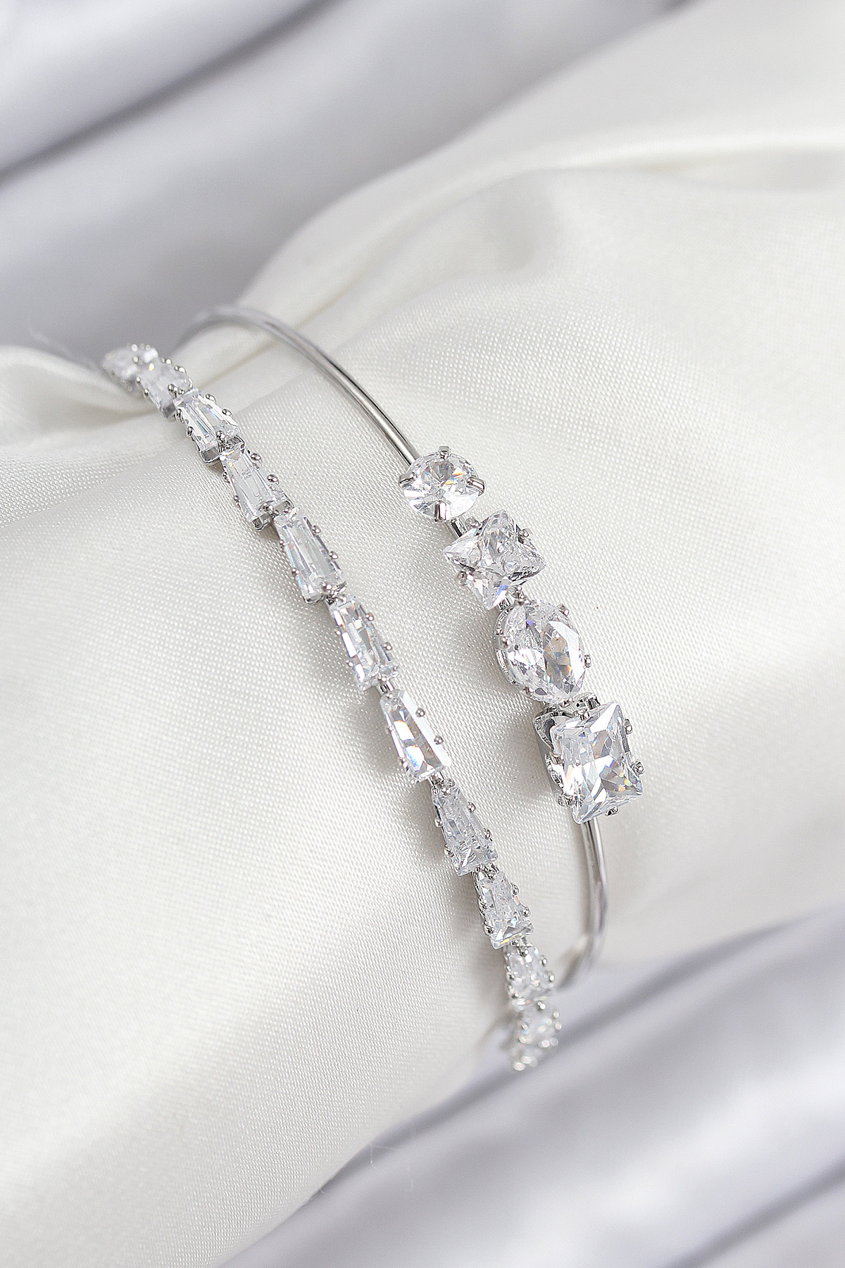 Pirinç Zirkon Taşlı Su Yolu Model Gümüş Renk Kadın Bileklik - TJ-BB7866