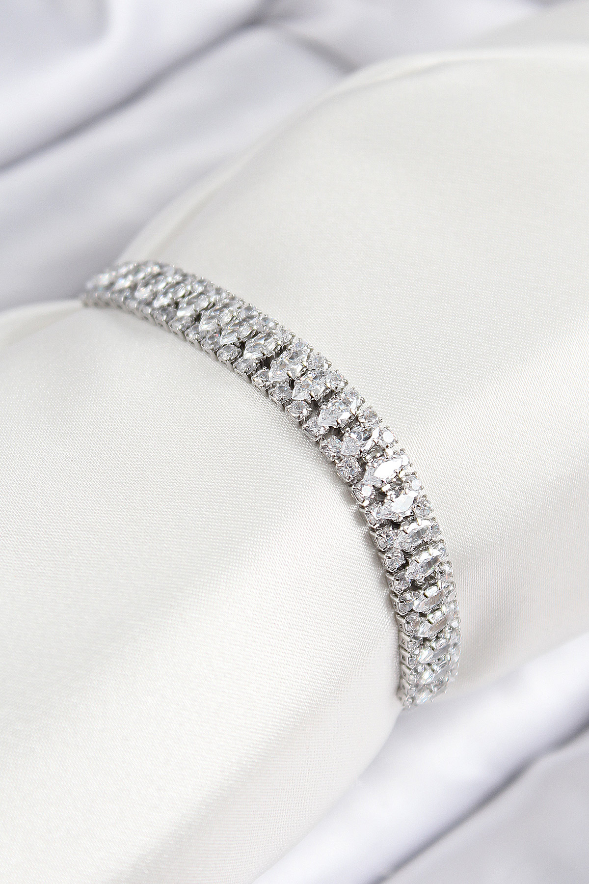 Pirinç Zirkon Taşlı Tennıs Model Gümüş Renk Asansörlü Kadın Bileklik - TJ-BB7716