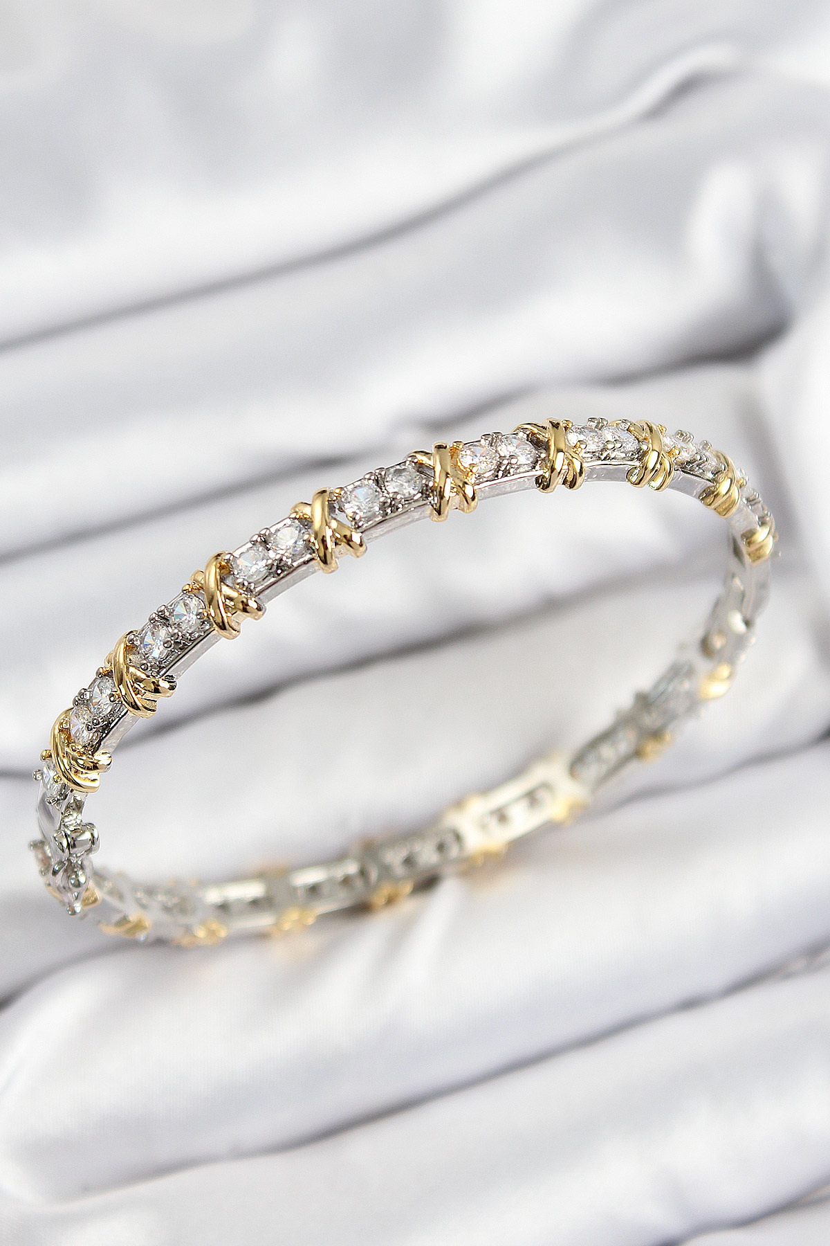 Pirinç Zirkon Taşlı XOXO Model Gümüş Ve Gold Renk Kadın Bileklik - TJ-BB7563