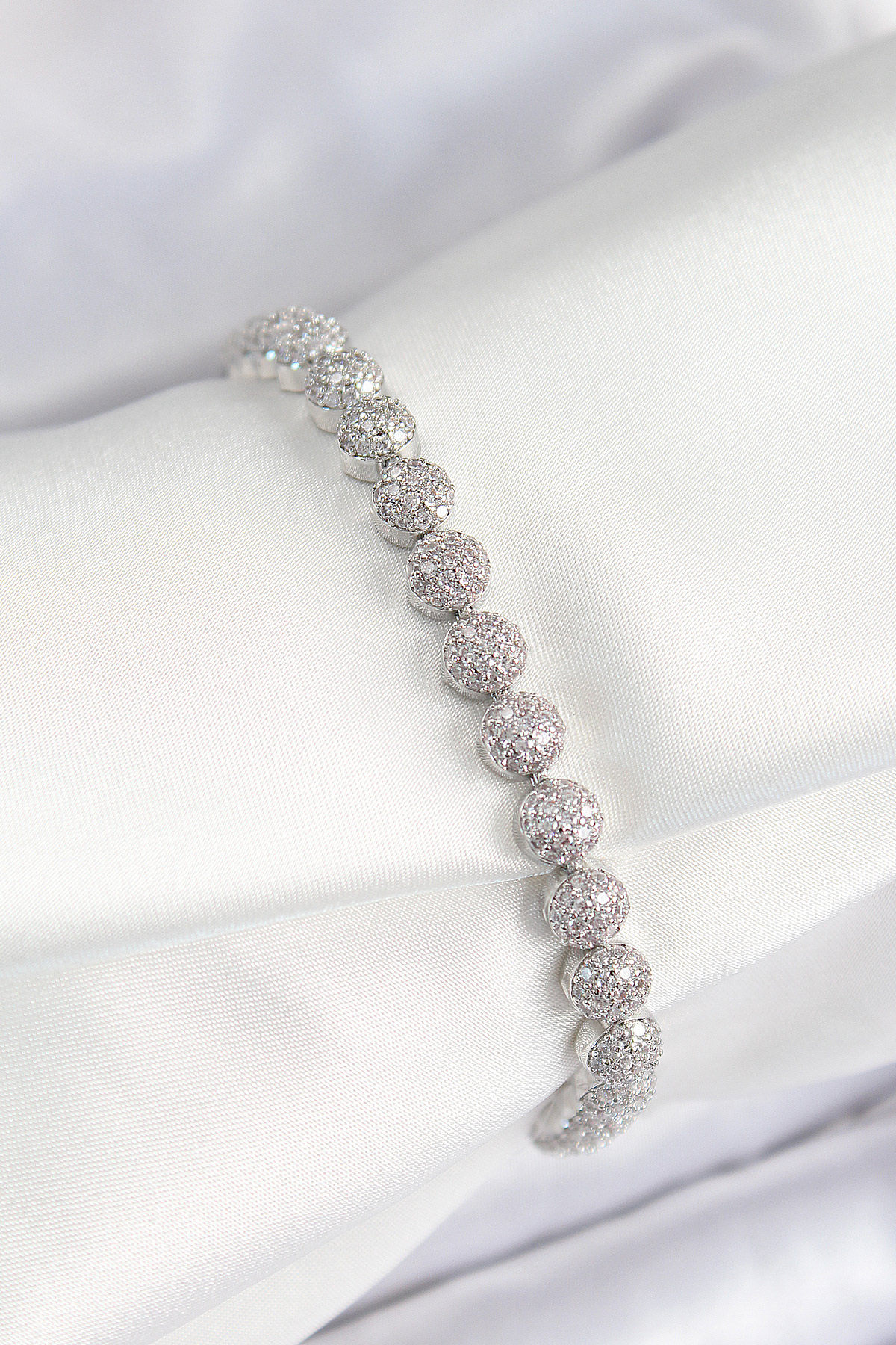 Pirinç Zirkon Taşlı Yarım Topcuk Model Gümüş Renk VIP Seri Kadın Bileklik - TJ-BB7507