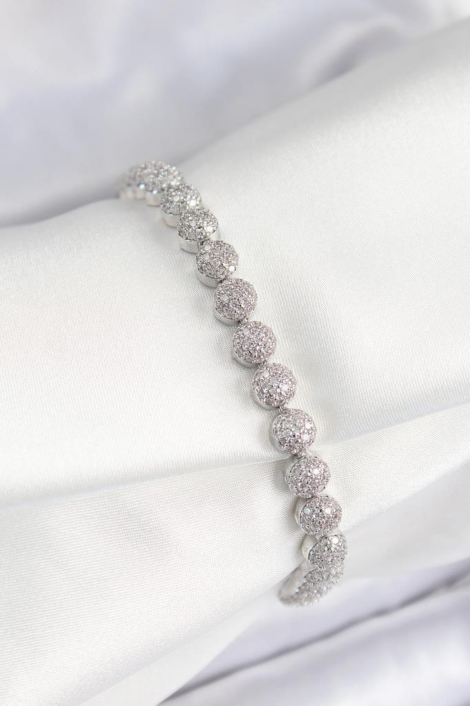 Pirinç Zirkon Taşlı Yarım Topcuk Model Gümüş Renk VIP Seri Kadın Bileklik - BB7507