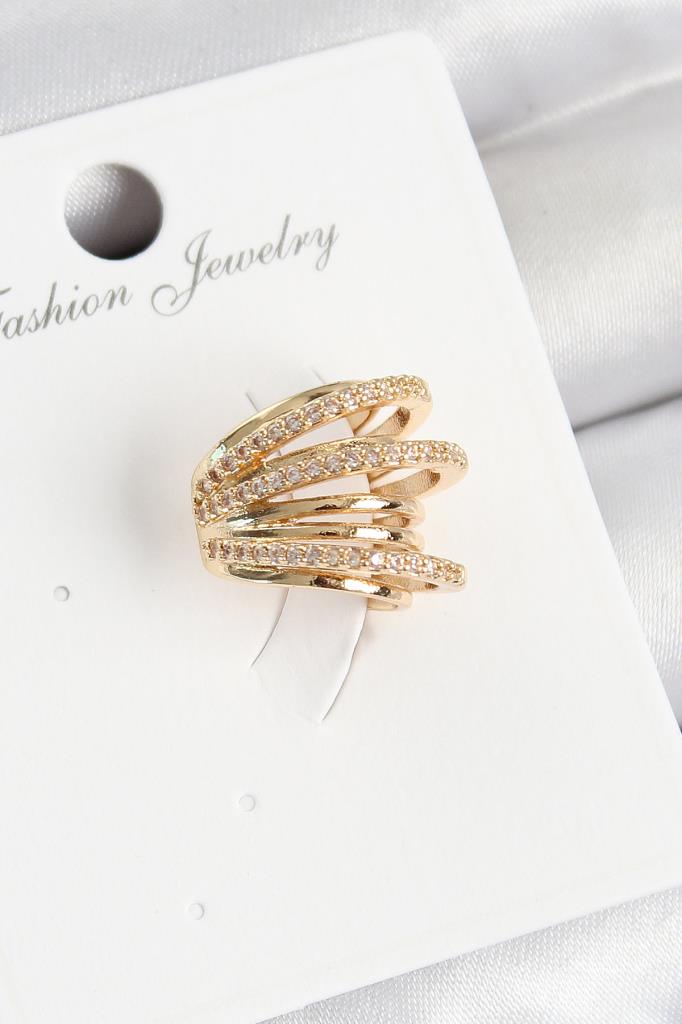 Pirinç Zirkon Taşlı Yay Model Gold Renk Sağ Kıkırdak Küpe - BKP11004
