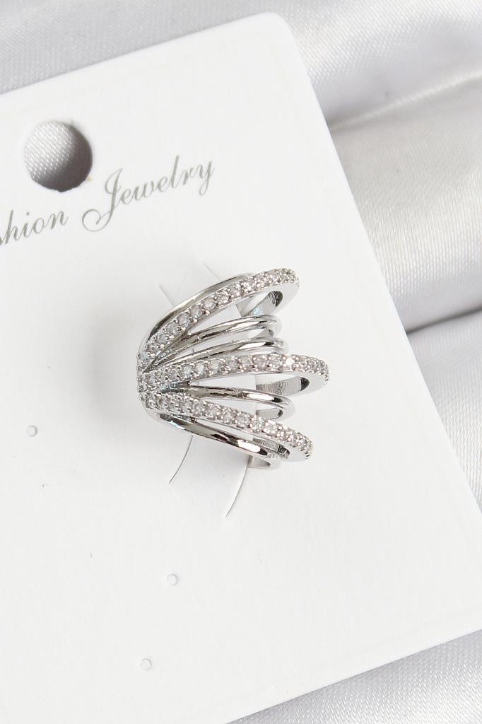 Pirinç Zirkon Taşlı Yay Model Gümüş Renk Sağ Kıkırdak Küpe - BKP11003