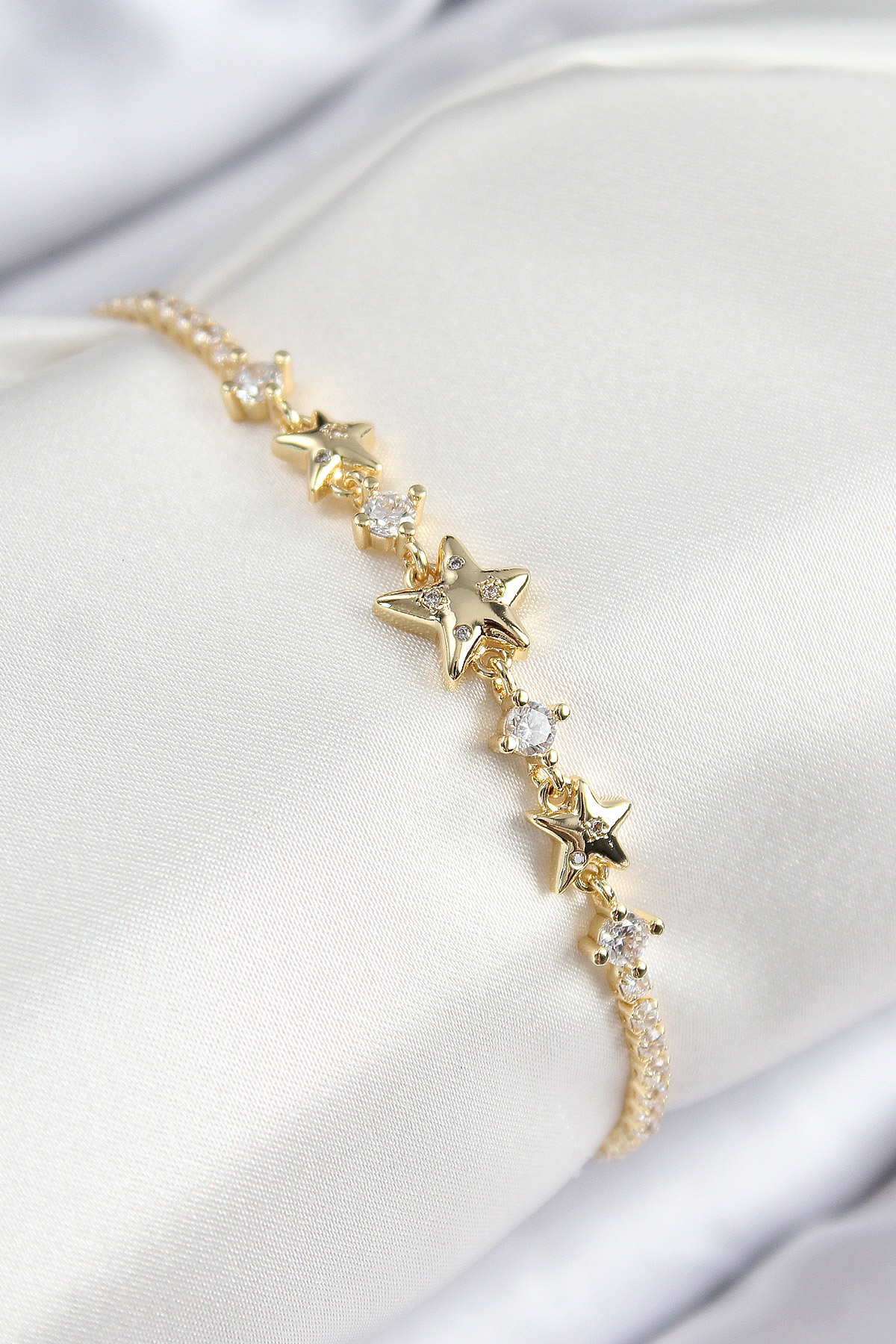 Pirinç Zirkon Taşlı Yıldız Model Gold Renk Kadın Bileklik - TJ-BB7707