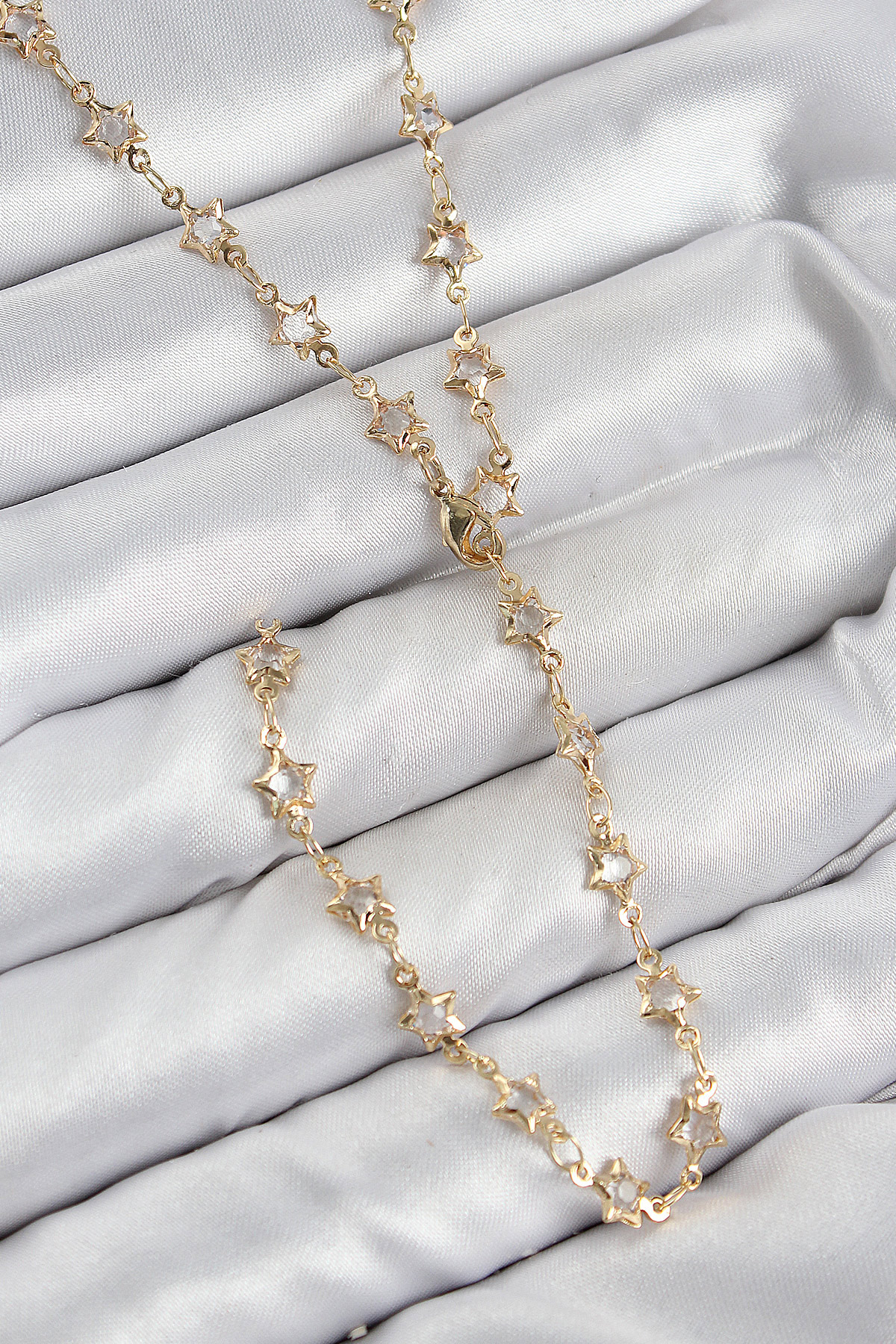 Pirinç Zirkon Taşlı Yıldız Model Gold Renk Kadın Y Kolye - TJ-BKO10436