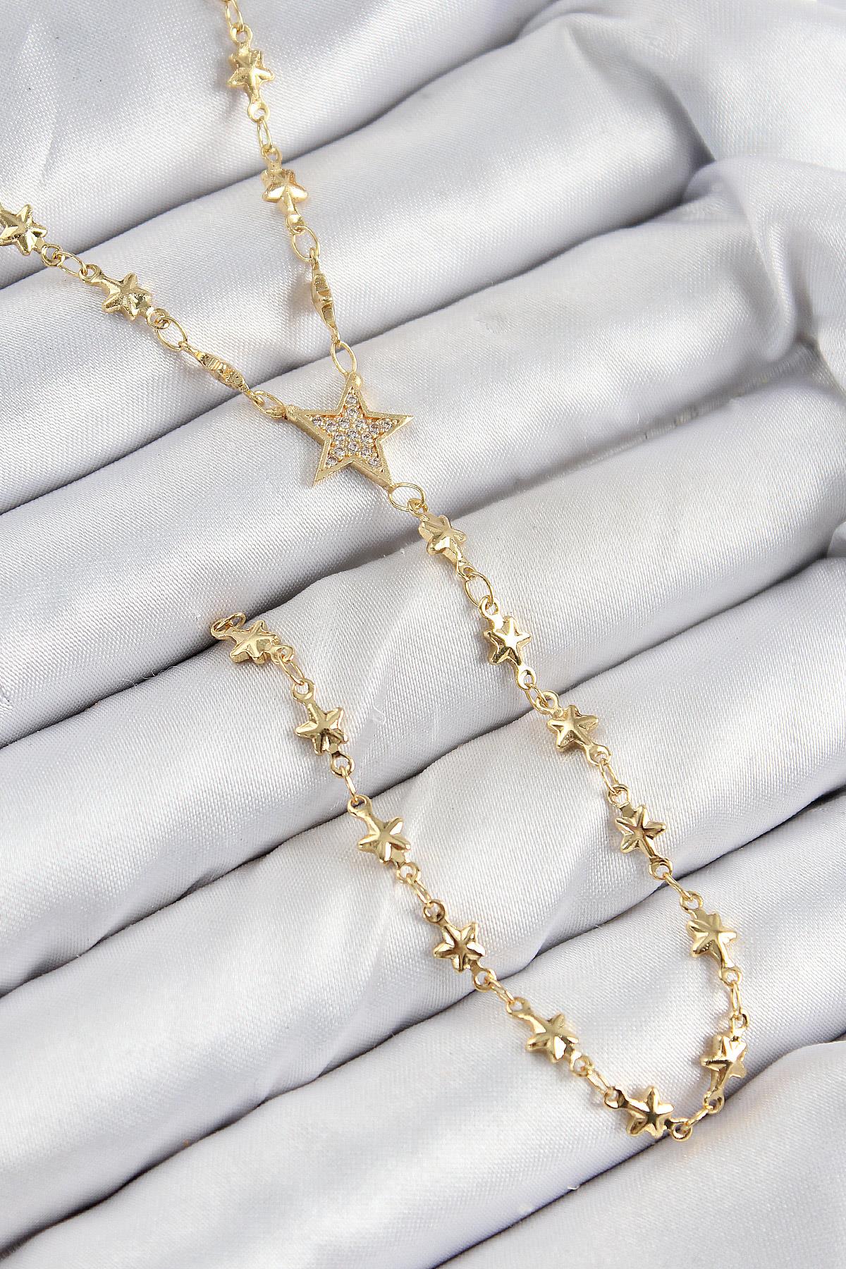 Pirinç Zirkon Taşlı Yıldız Model Gold Renk Y Kolye - BKO10459