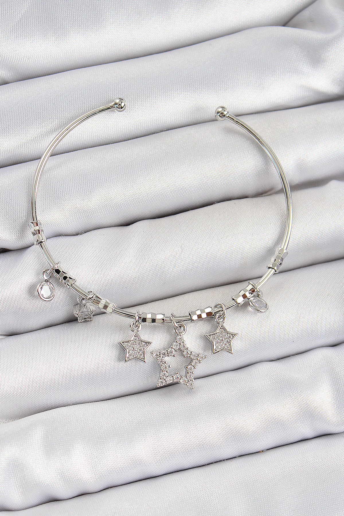 Pirinç Zirkon Taşlı Yıldız Model Gümüş Renk Charm Bileklik - TJ-BB7347