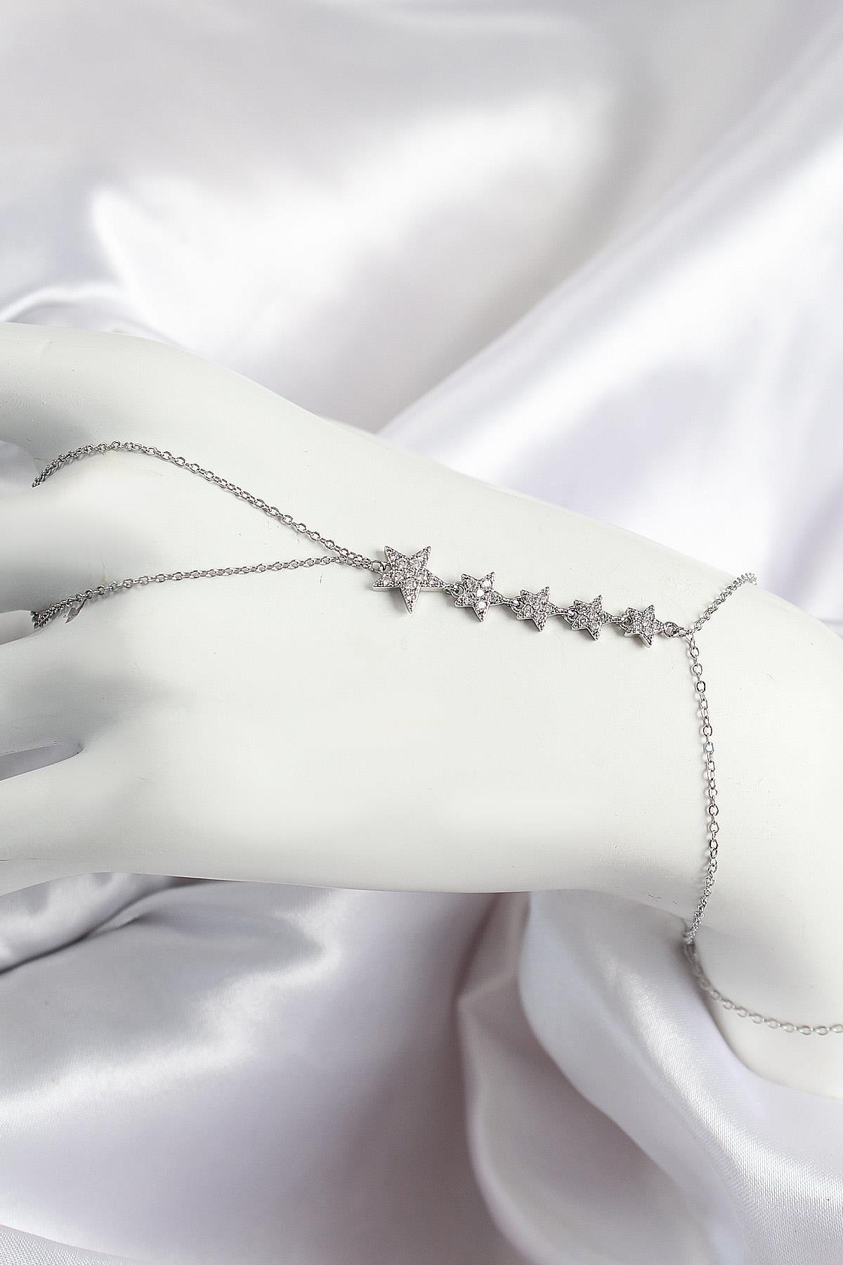 Pirinç Zirkon Taşlı Yıldız Model Gümüş Renk Kadın Şahmeran - TJ-SN688