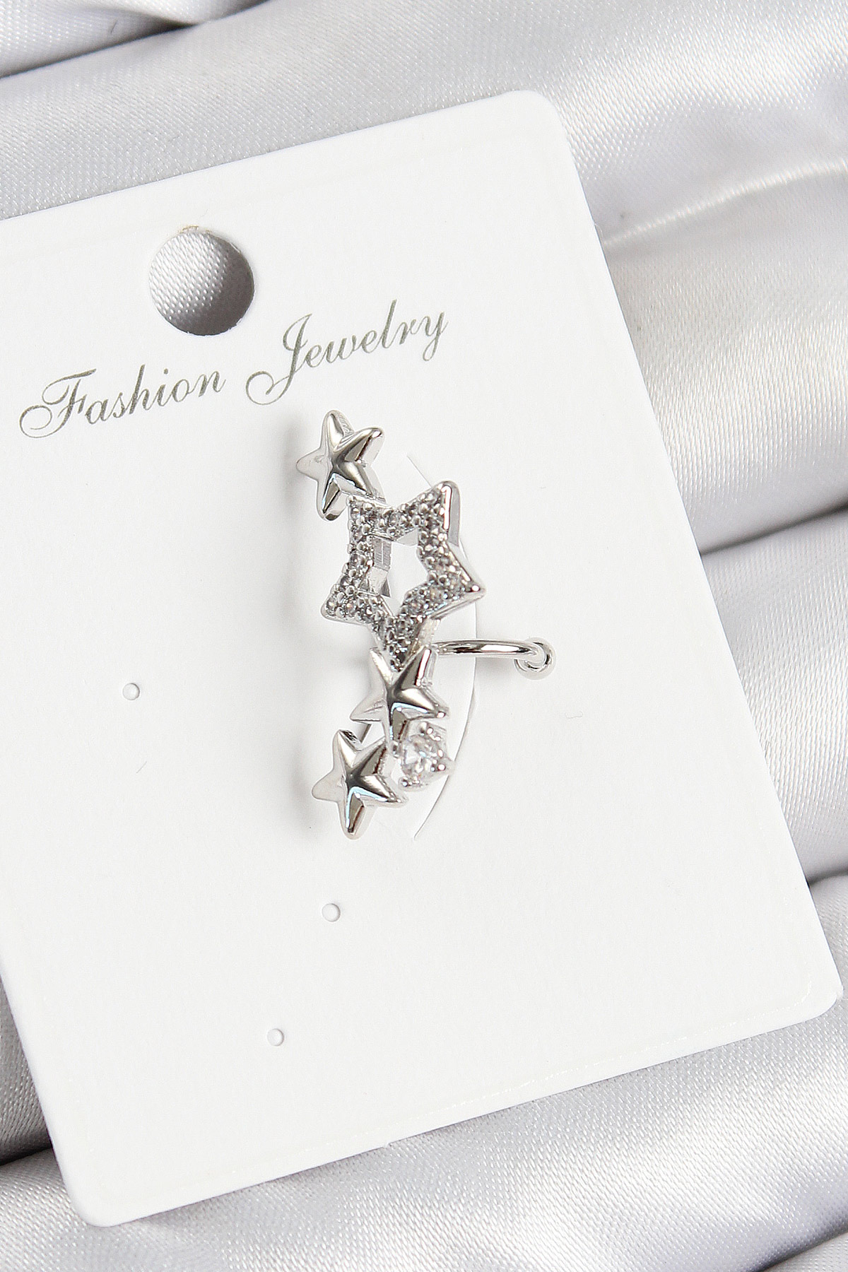 Pirinç Zirkon Taşlı Yıldız Model Gümüş Renk Sağ Kıkırdak Küpe - TJ-BKP11001
