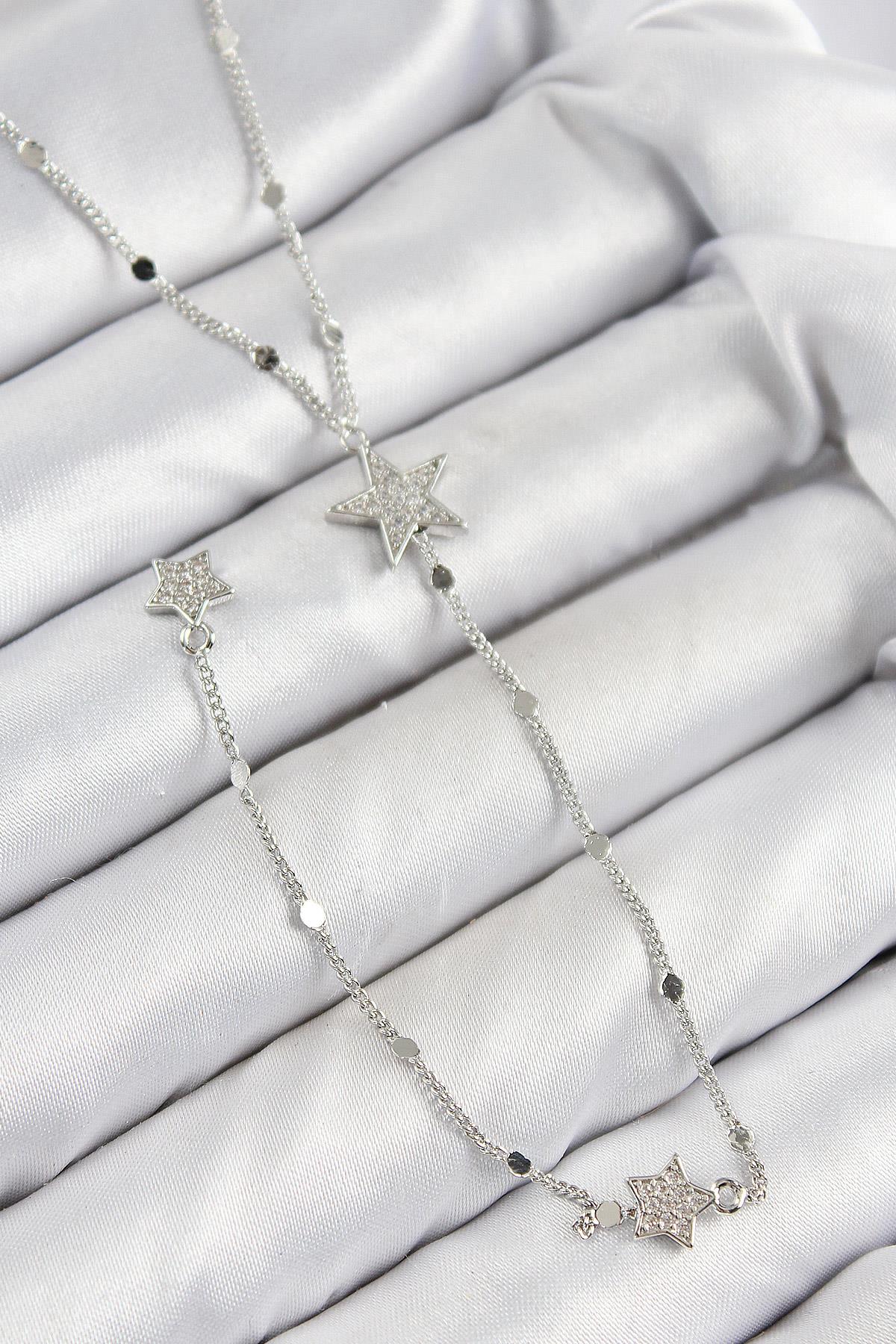Pirinç Zirkon Taşlı Yıldız Model Gümüş Renk Y Kolye - BKO10454