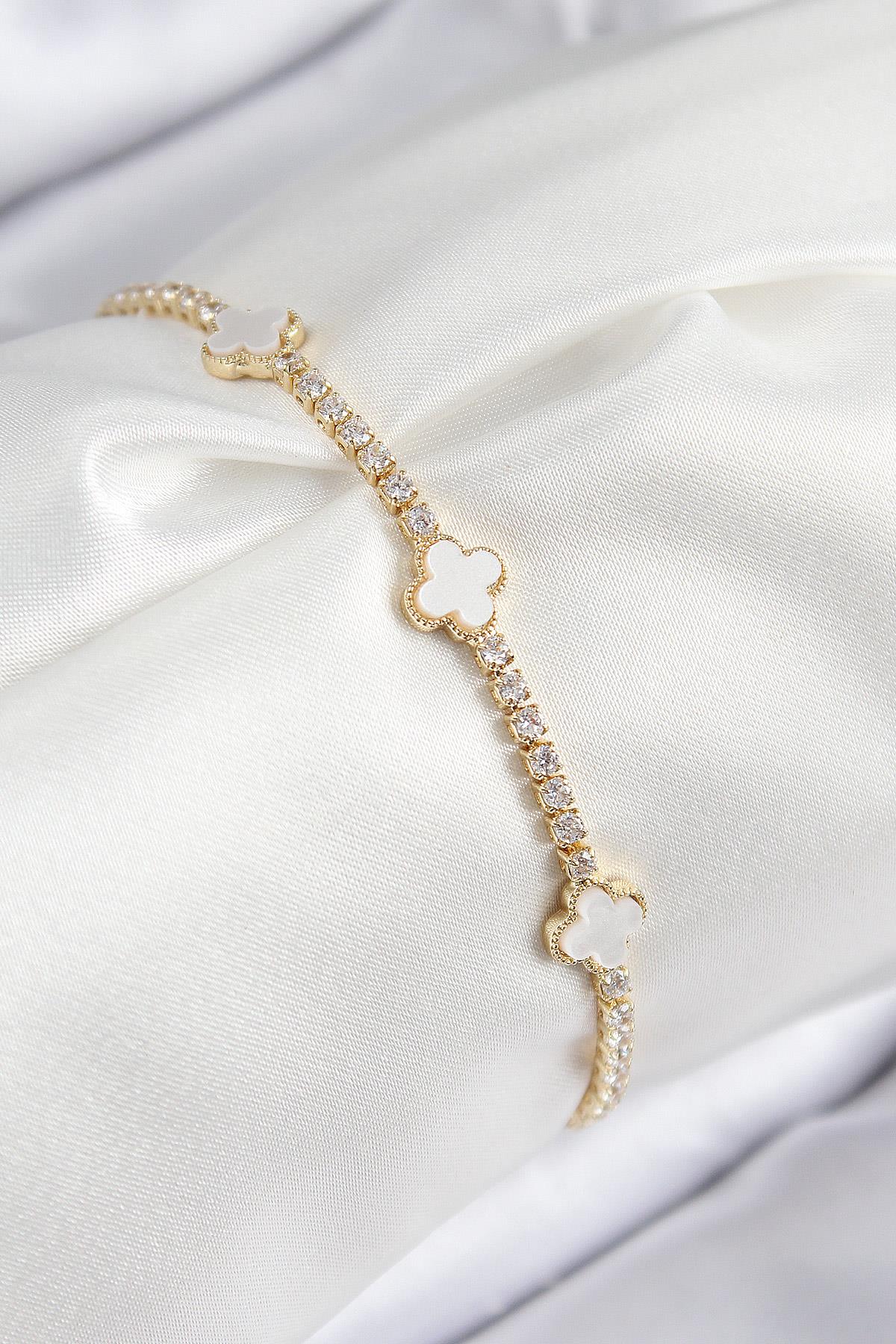 Pirinç Zirkon Taşlı Yonca Model Gold Renk Kadın Bileklik - BB7703