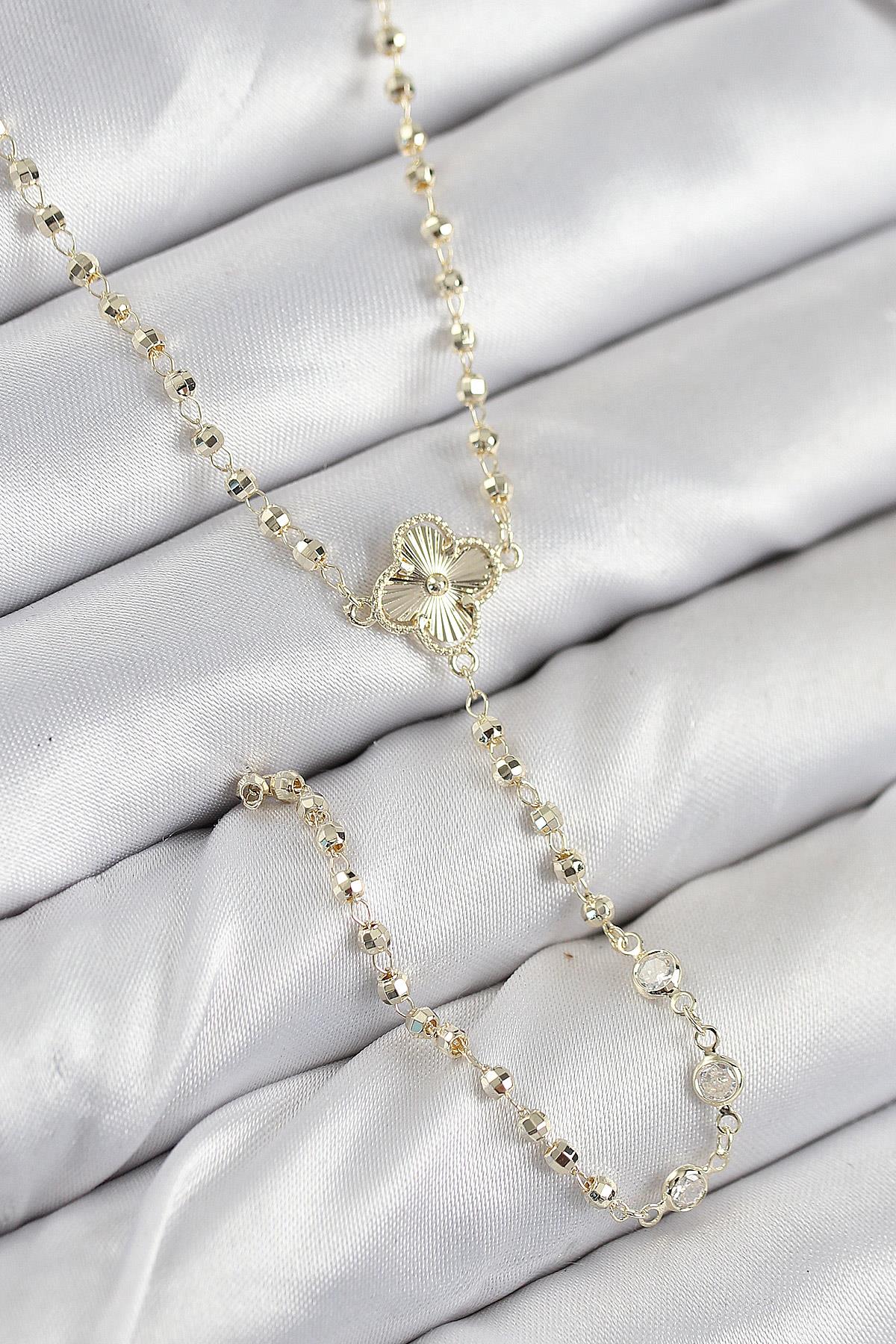 Pirinç Zirkon Taşlı Yonca Model Gold Renk Kadın Y Kolye - TJ-BKO10499