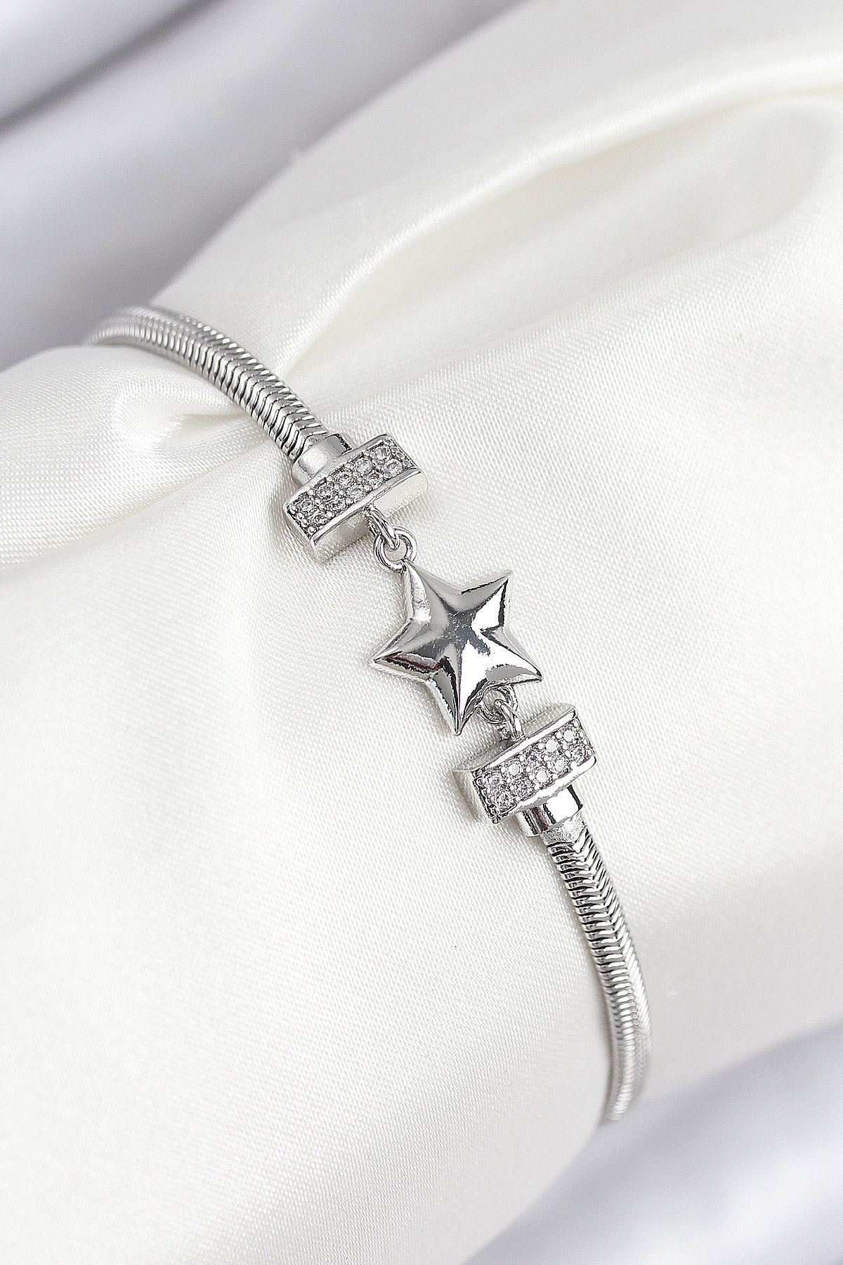 Pirinç Zirkon Taşlı Yonca Model Gümüş Renk Kadın Bileklik - TJ-BB7898