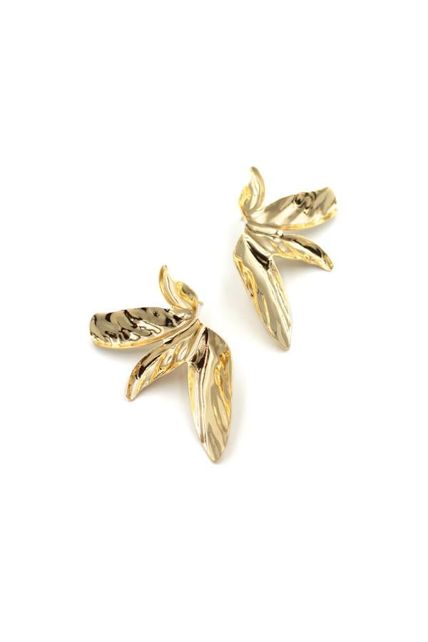 Plaka Yaprak Küpe - Altın