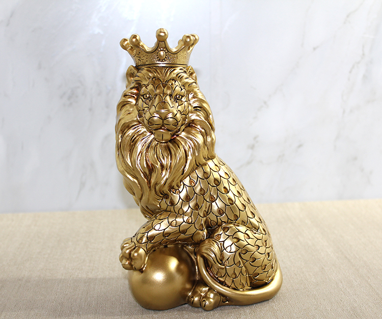Polyester Dekoratif Taçlı Aslan Figürü